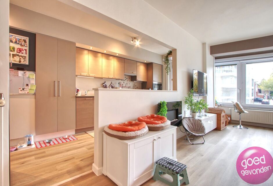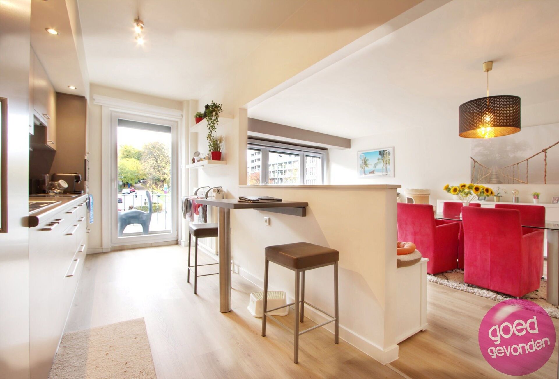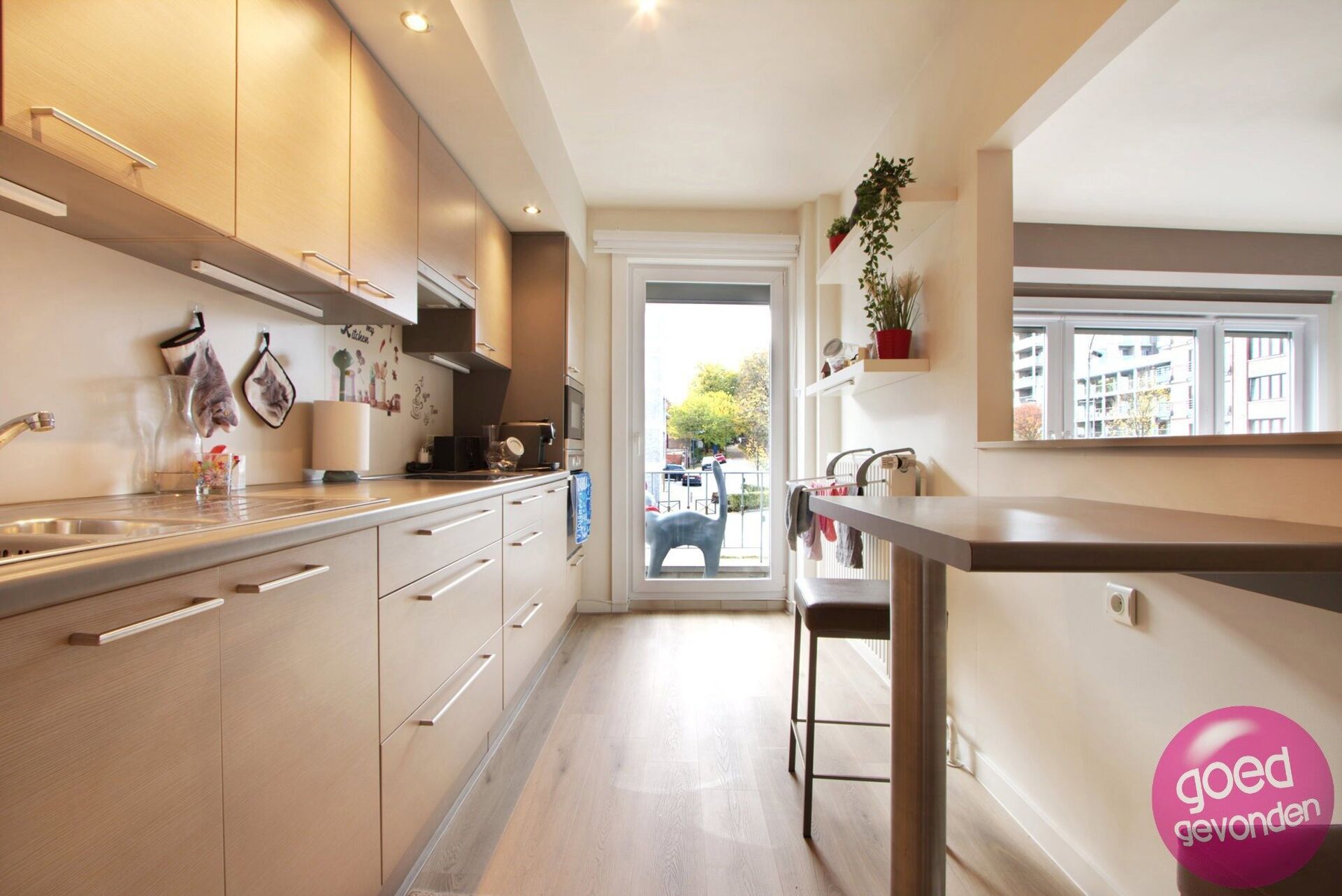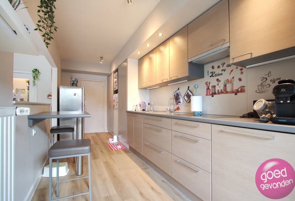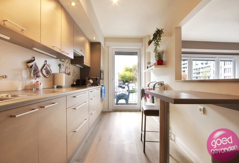 + ruime keuken, volledig vernieuwd in 2025 en zeer geriefelijk met toegang tot balkon
