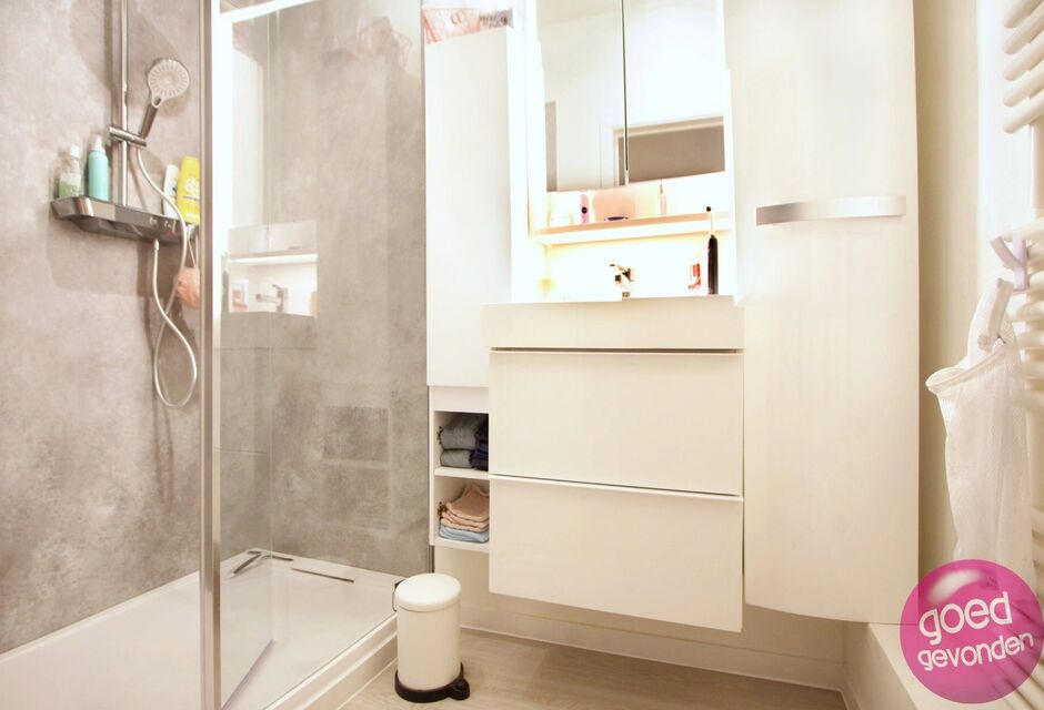 + badkamer voorzien van inloopdouche, lavabo en kasten
