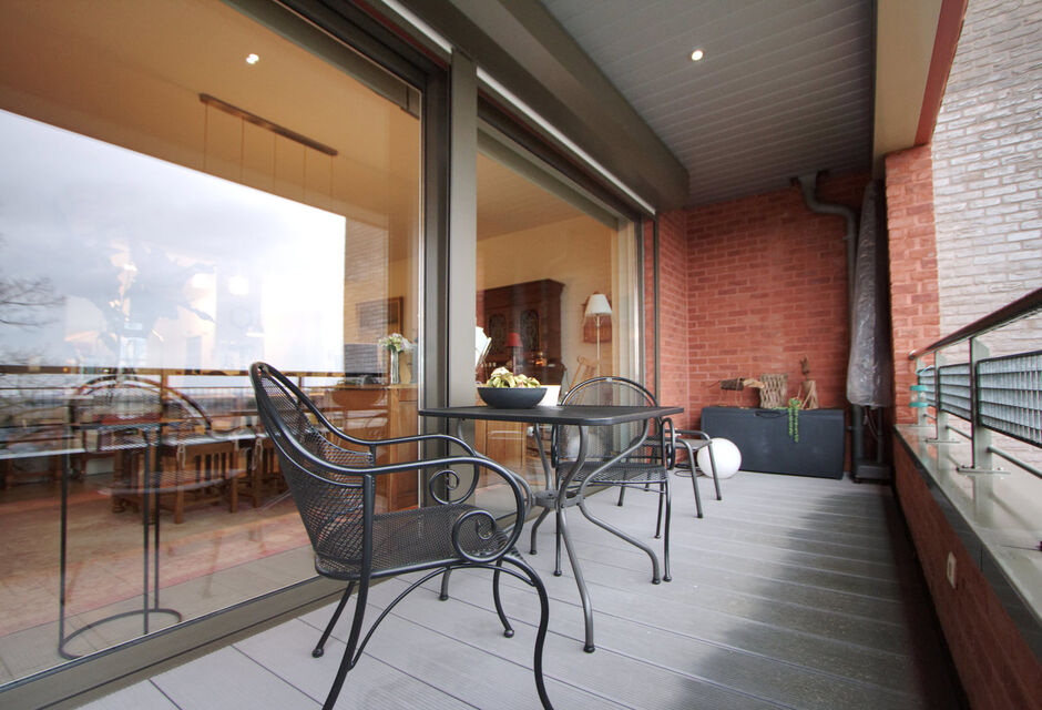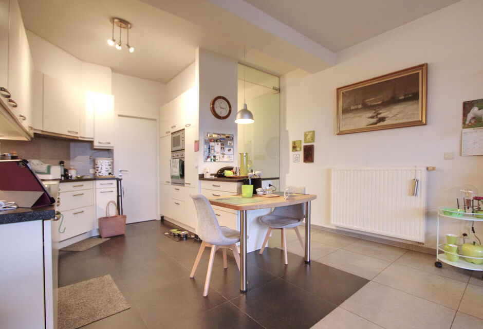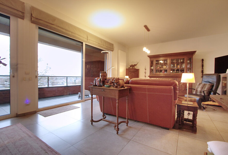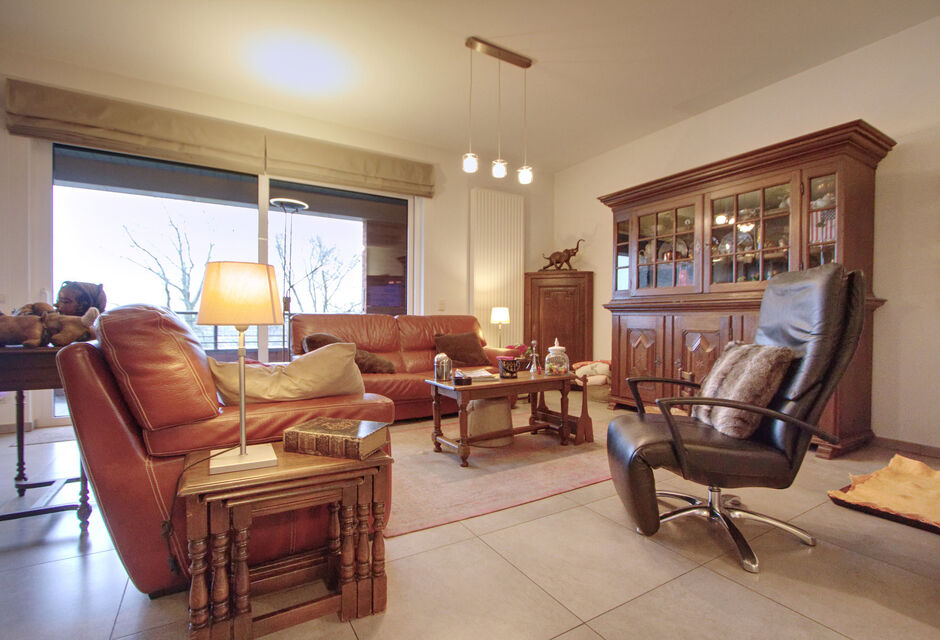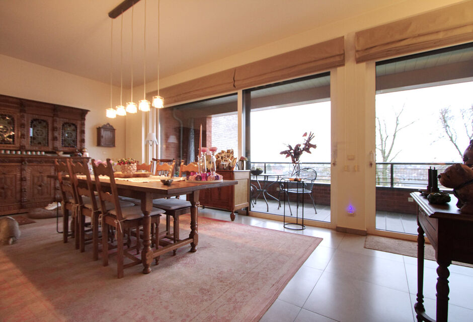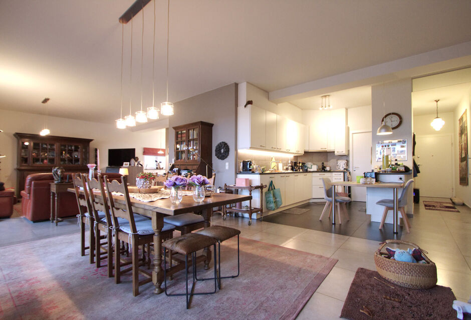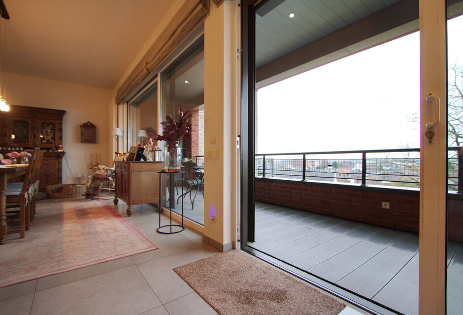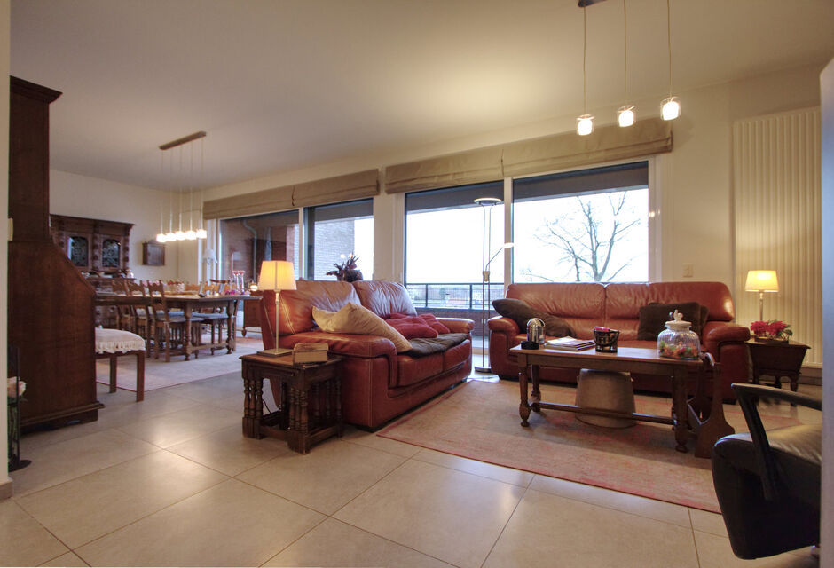 UITZONDERLIJK RUIM en INSTAPKLAAR APPARTEMENT van 142 m² op toplocatie tussen stad en natuur met 2 slaapkamers en voorzien van een ruim en zonnig overdekt terras, 2 ondergrondse parkings en kelderberging.
