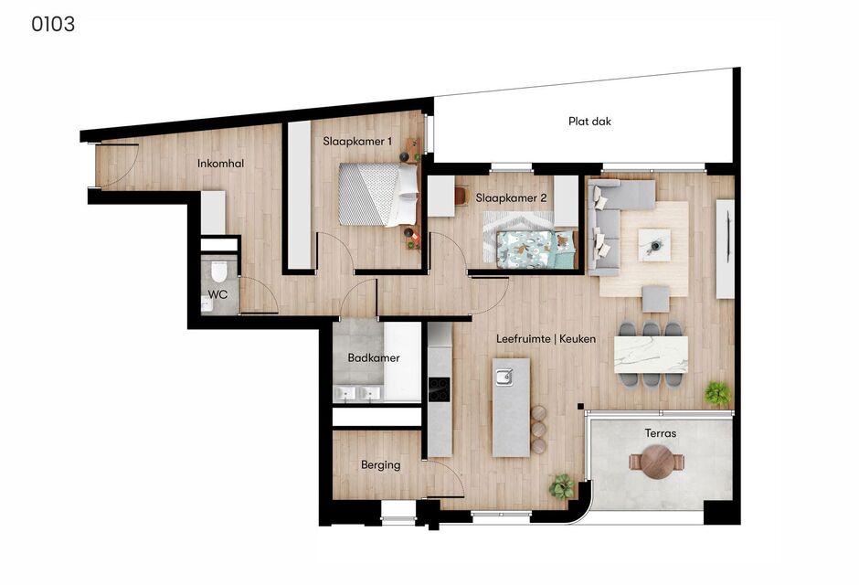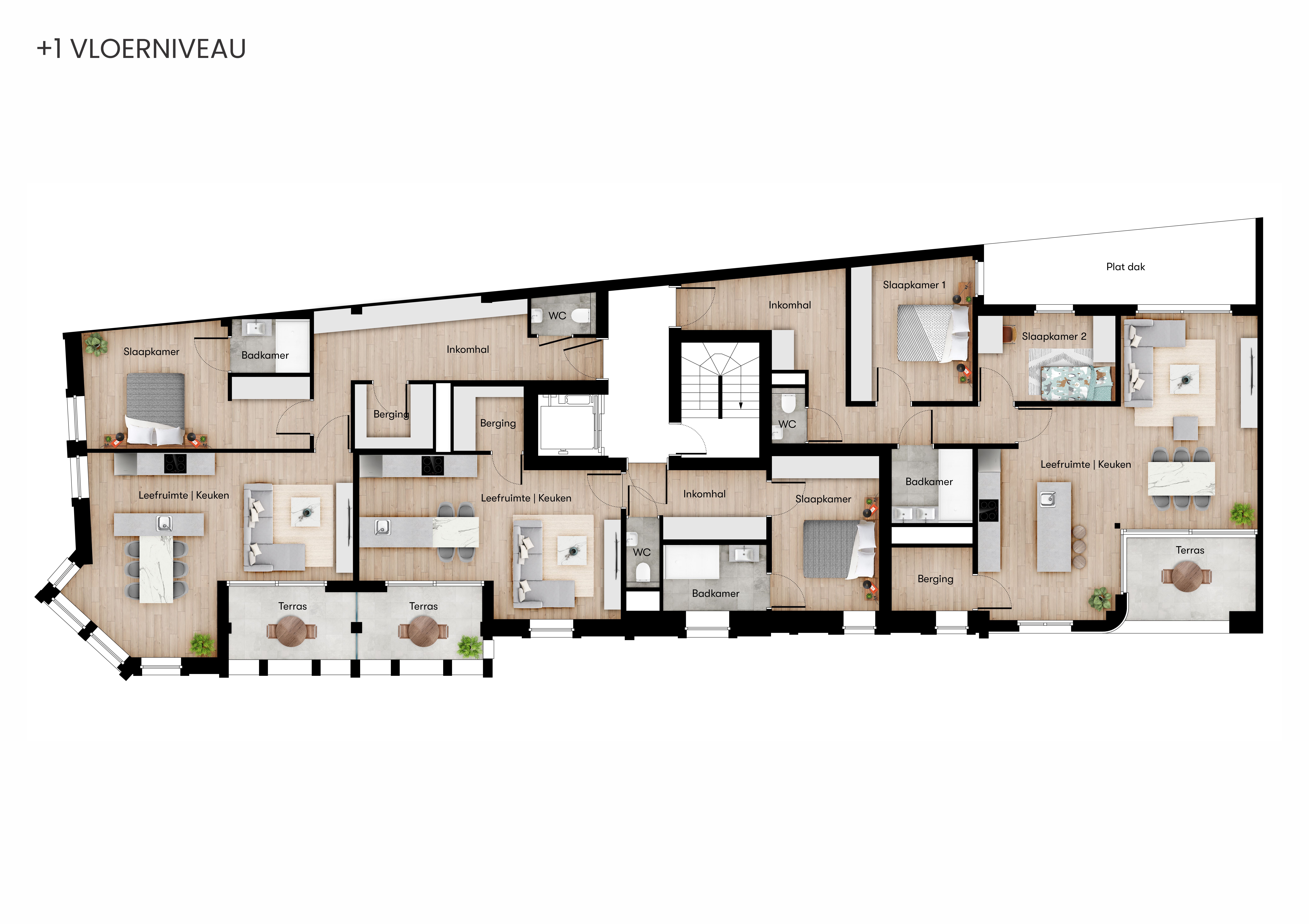 Ruime, lichtrijke appartementen met 1 of 2 slaapkamers. Elk appartement heeft bovendien een terras, bergruimte en privé kelder. (Elk appartement beschikt over een eigen oplader met betrekking tot elektrische fietsen) Je kan zelf nog beslissen over de afwerking en keuze van de badkamer en keuken.