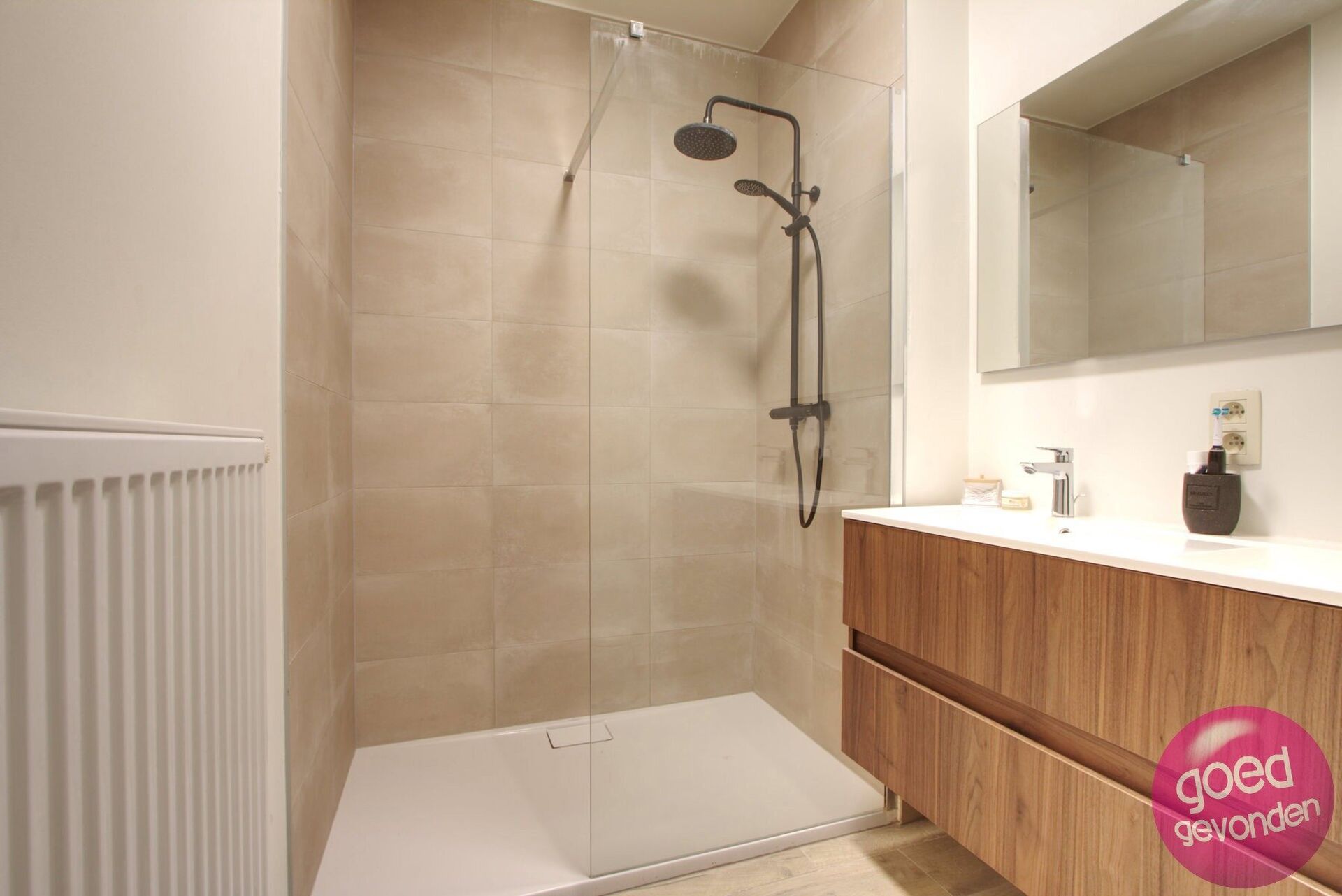- badkamer (inloopdouche en dubbele lavabo)