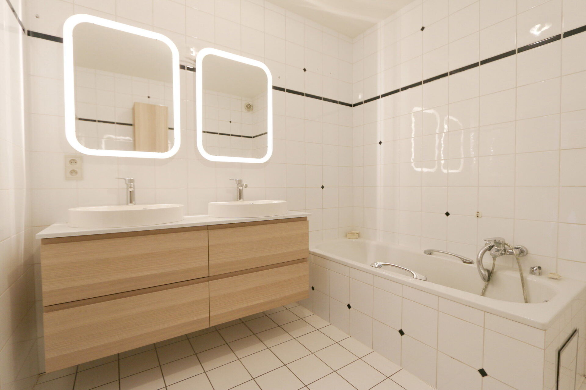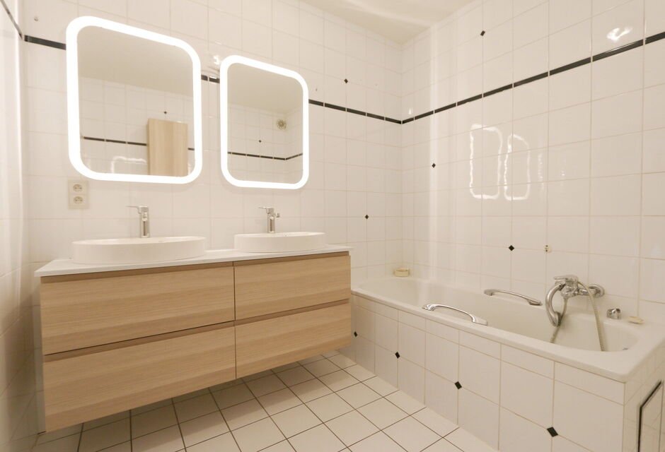 + vernieuwde badkamer met dubbele lavabo, douche en bad en aansluitingen wasmachine en droger