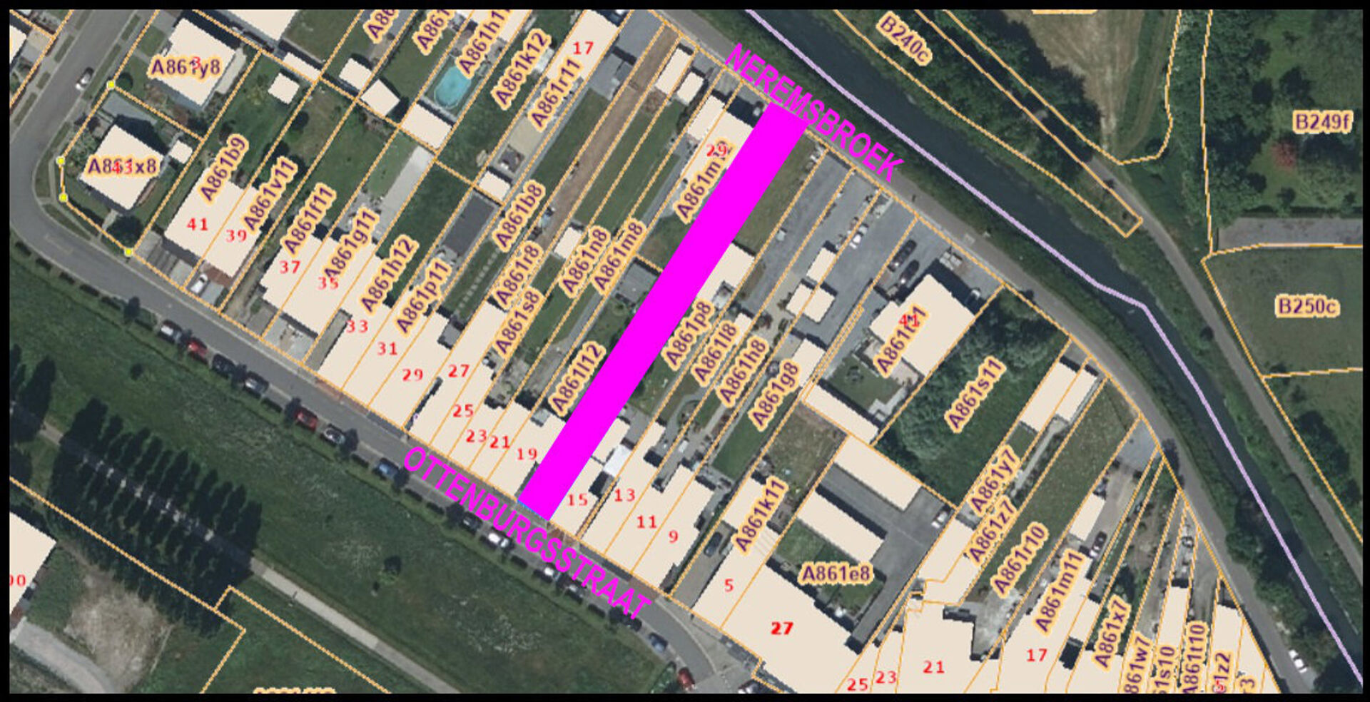 + bouw 1 huis aan de Neremsbroek en geniet van een extra toegang aan de Ottenburgsstraat (wagen, fietsen, tuinafval, ...)