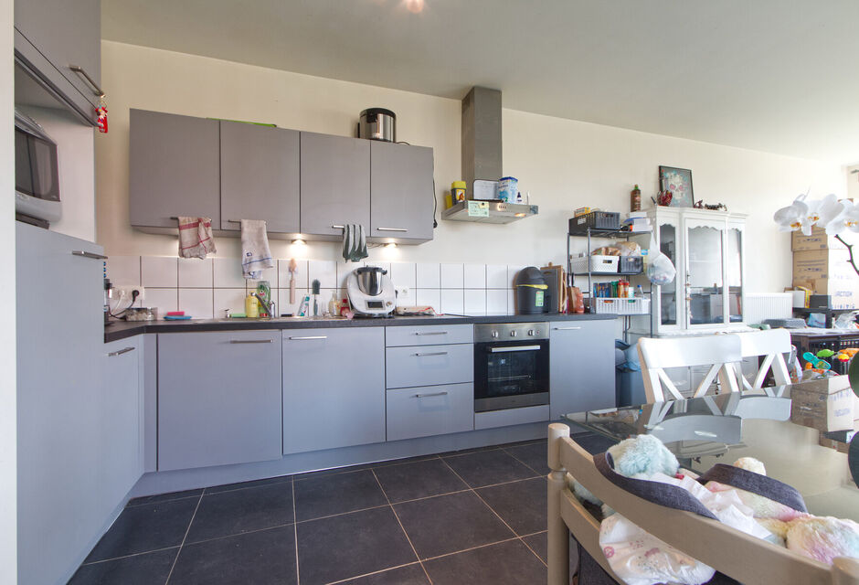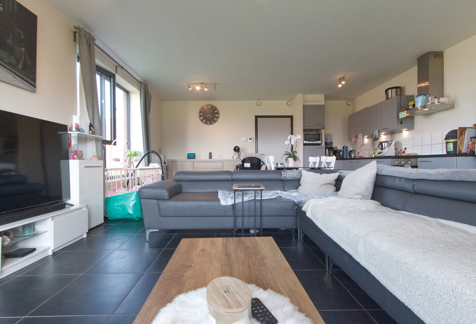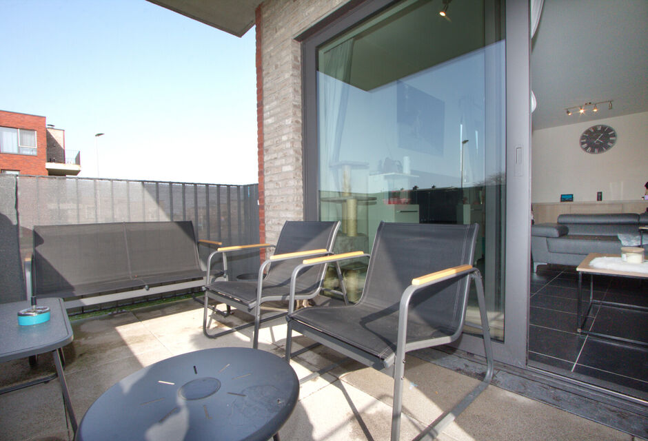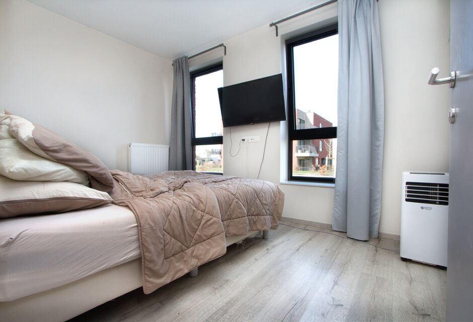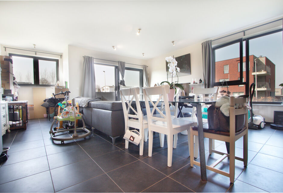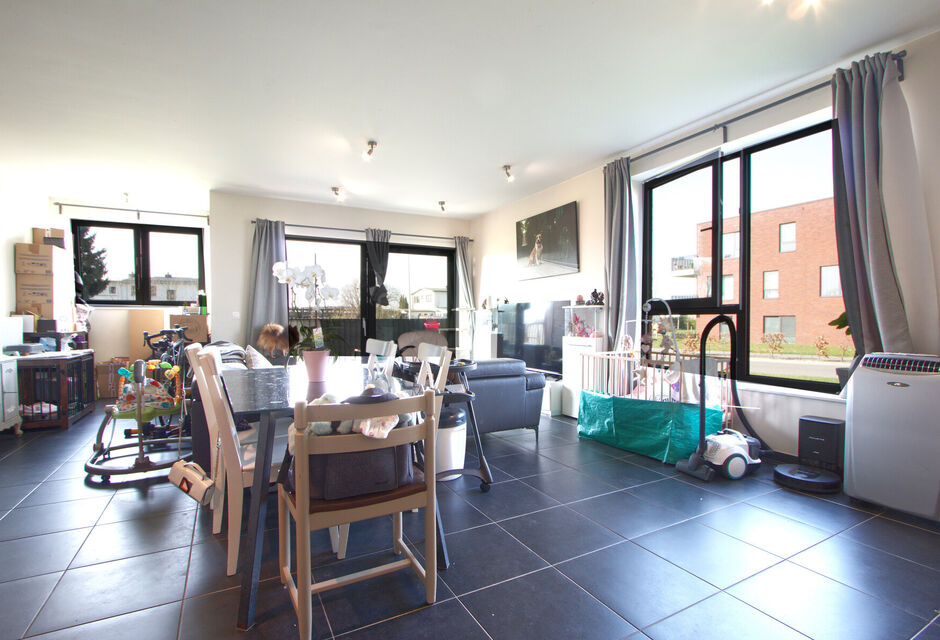 GELIJKVLOERS APPARTEMENT met 2 SLAAPKAMERS voorzien van privé-parking, rustig gelegen in de stadsrand, van recent bouwjaar (2018) en met beperkte gemeenschappelijke kosten.
