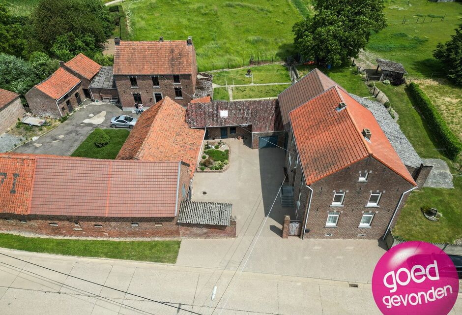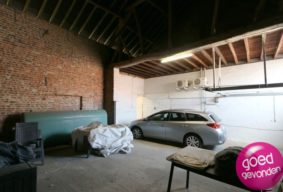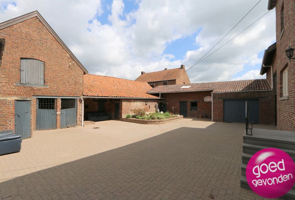 De grote schuur, dienstgebouwen, garages en stallingen zijn samen goed voor een 350 m² aan extra gelijkvloerse ruimte en staan, samen met de woning, gegroepeerd rondom een grote binnenkoer van 160 m², bereikbaar vanaf de straat.