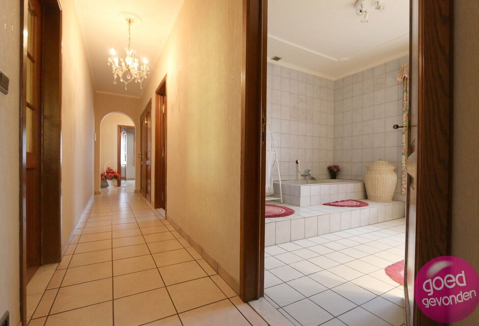 De woning biedt een uitzonderlijk gevoel van openheid: de grote living met eetplaats loopt naadloos over in de ruime keuken met eethoek, vervolgens in de verwarmde veranda, en tenslotte in het overdekte terras met tuin — één vloeiende leefruimte die het hele jaar door uitnodigt om samen te genieten.