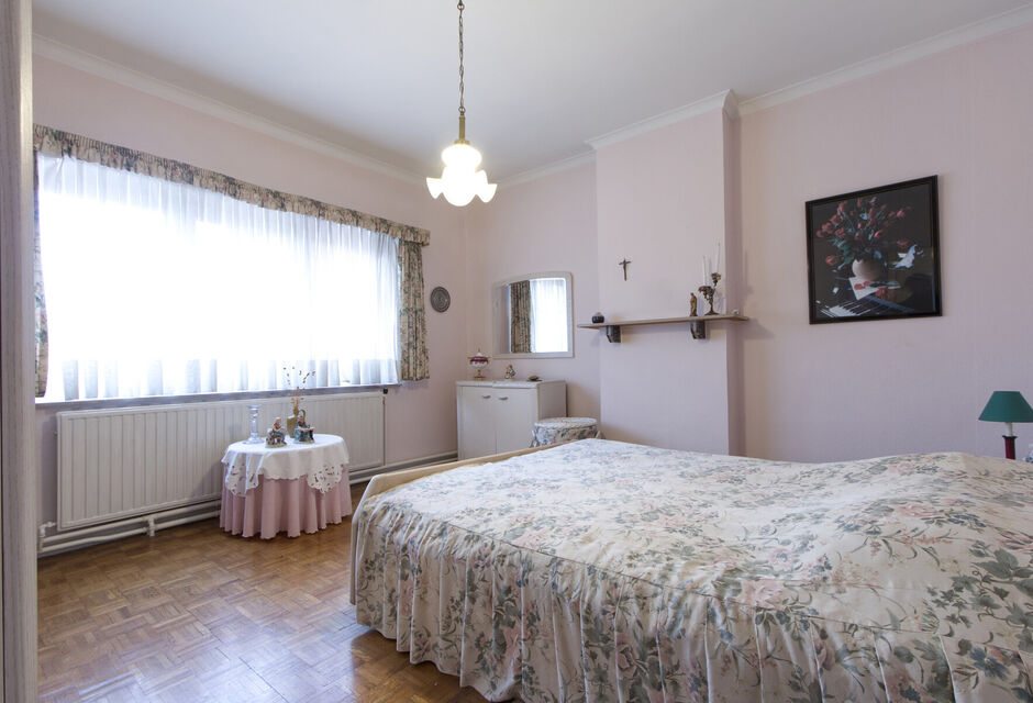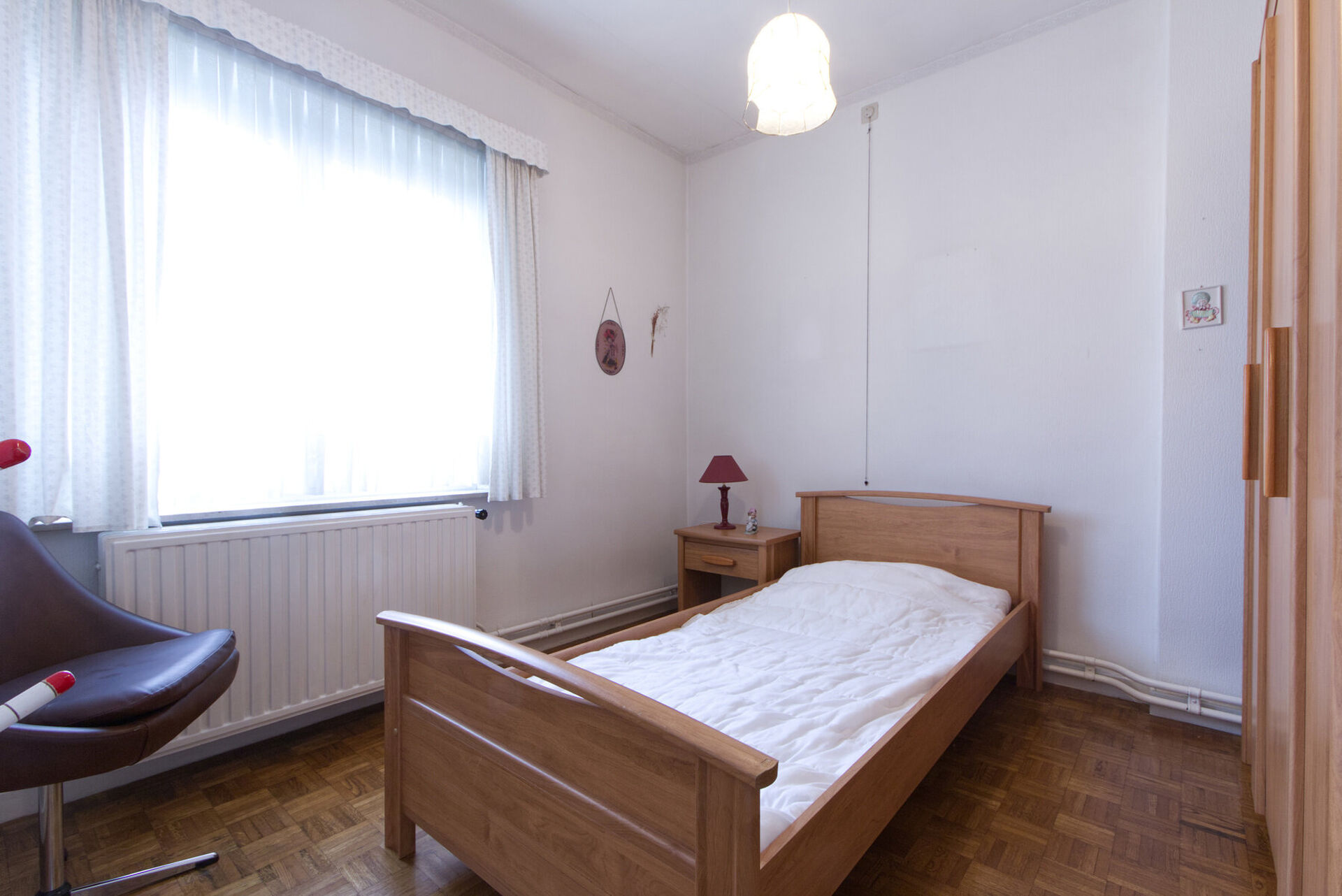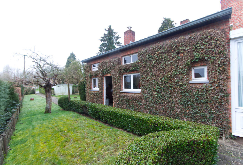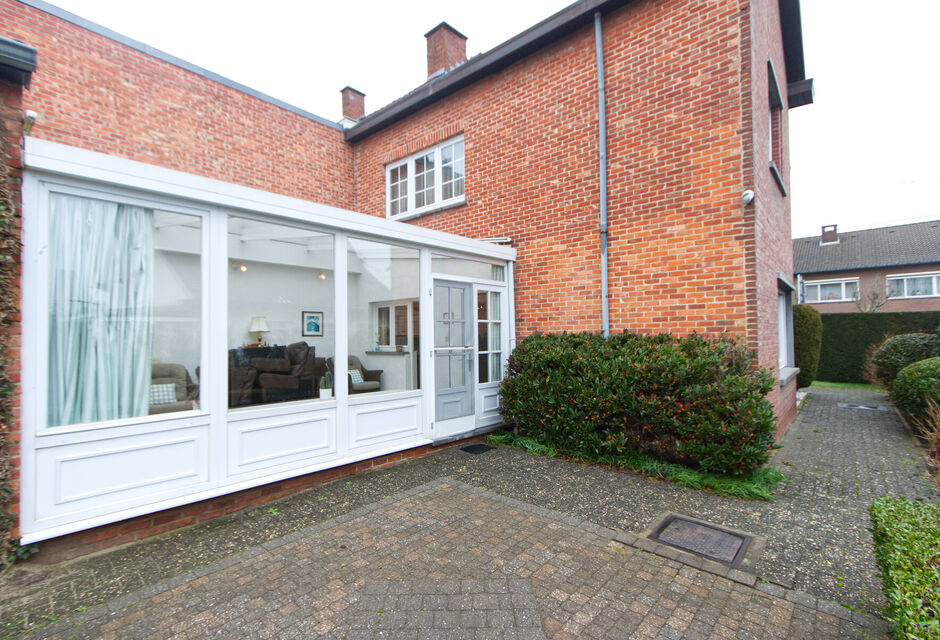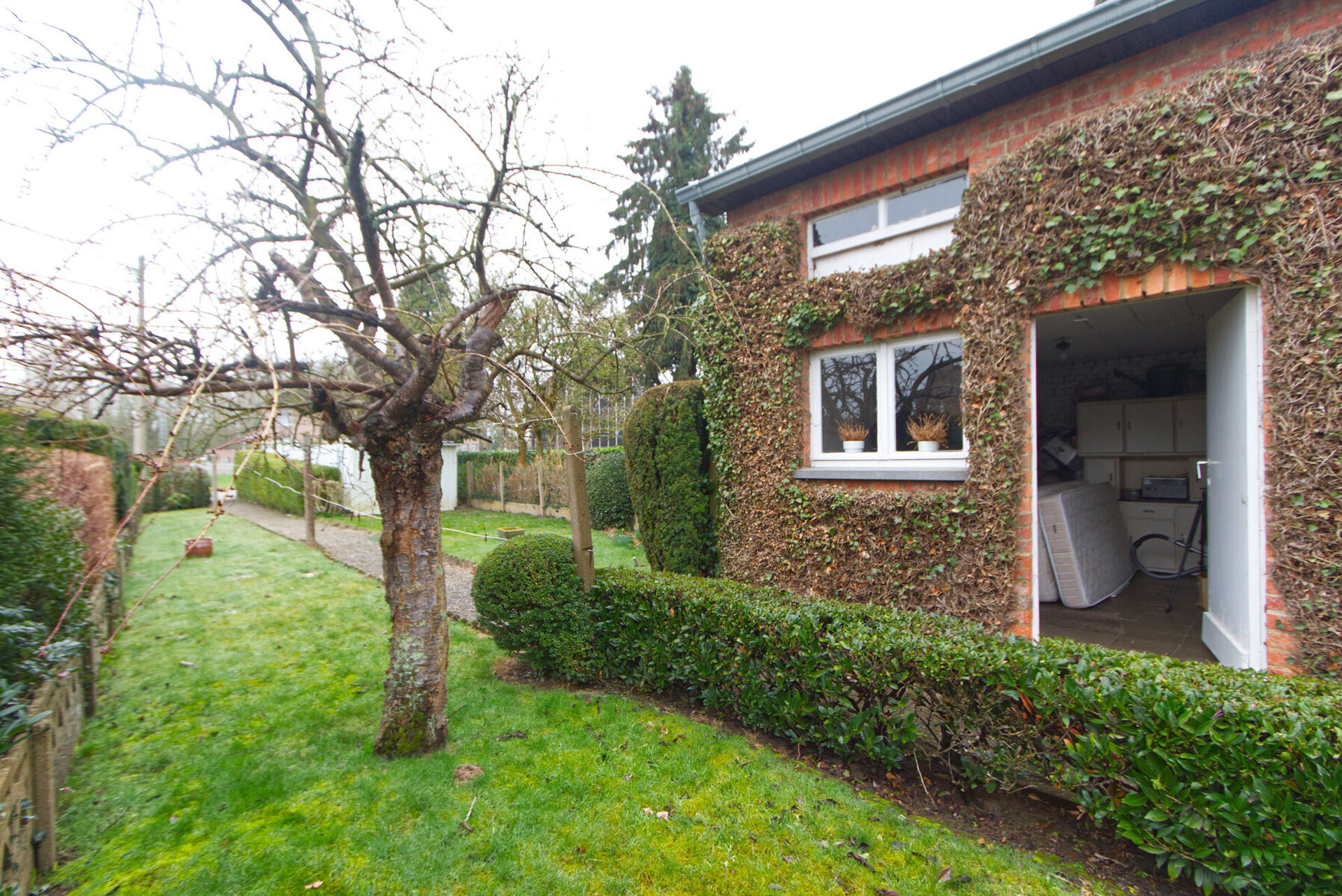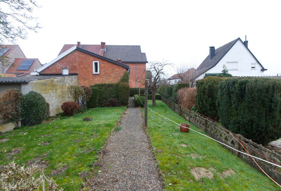De tuin loopt volledig door tot aan de achterliggende straat waar zich een zeer ruime garagebox bevindt, wat zorgt voor een vlotte bereikbaarheid.