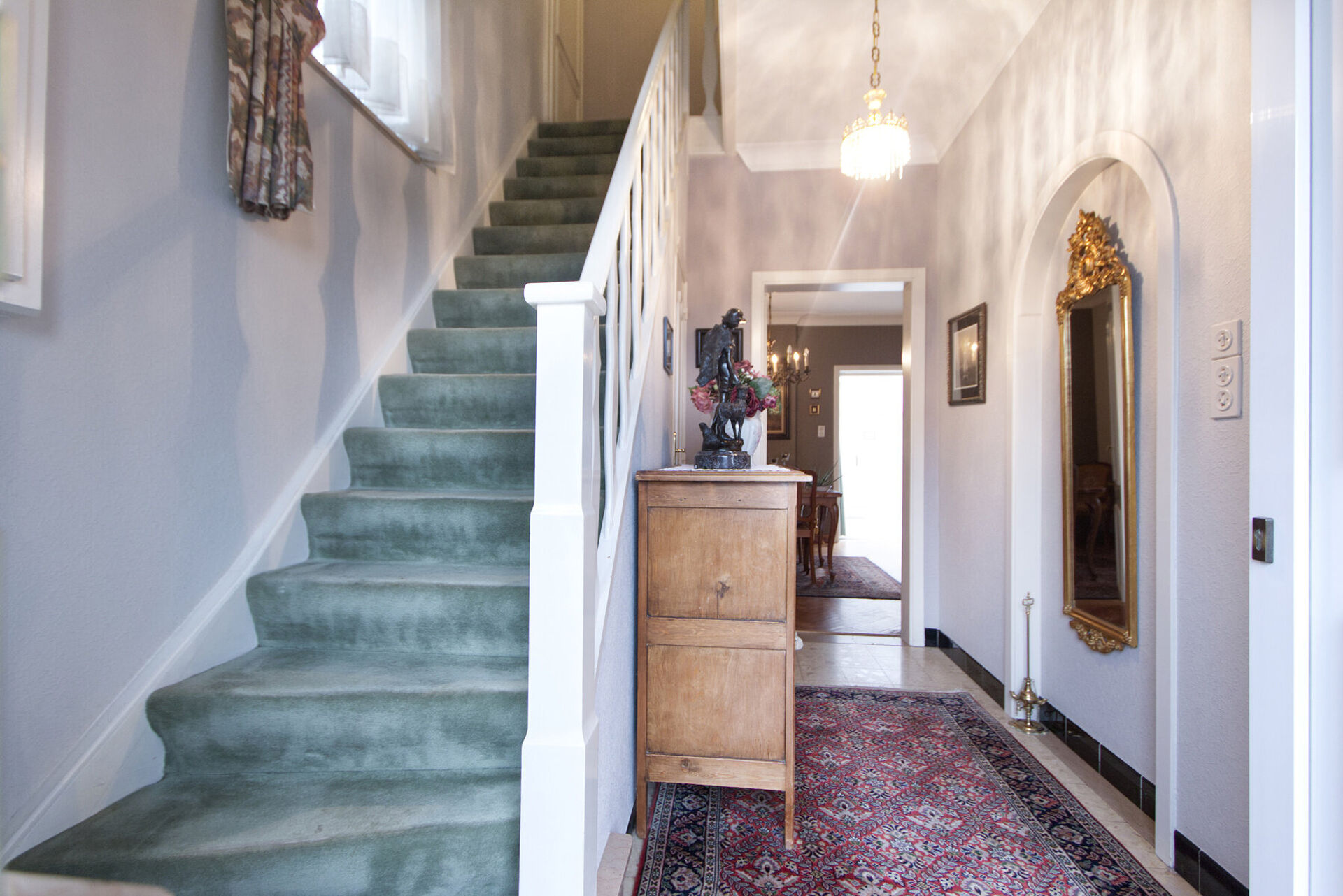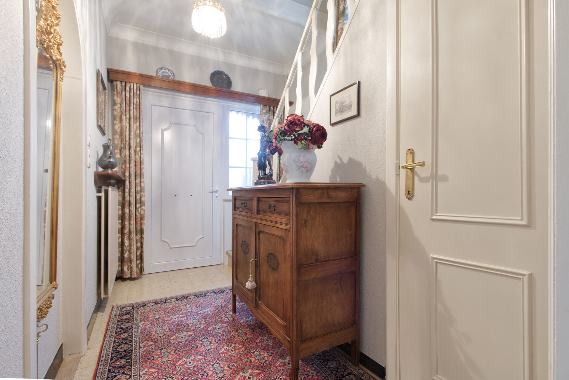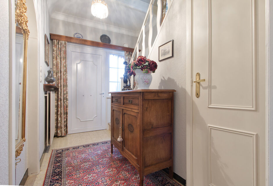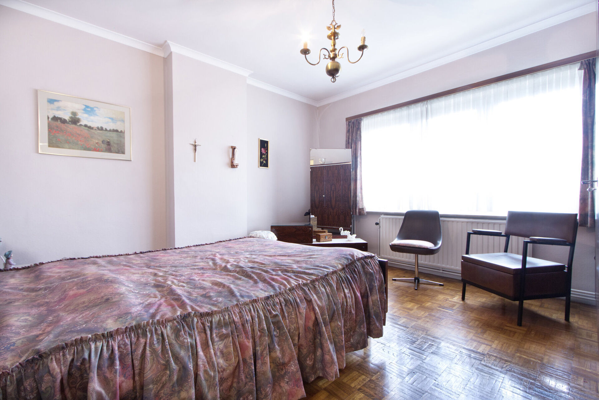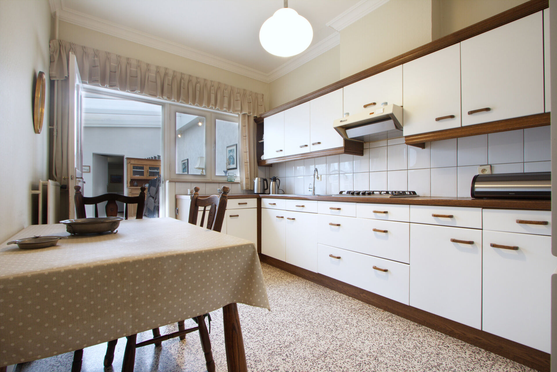 De tuin loopt volledig door tot aan de achterliggende straat waar zich een zeer ruime garagebox bevindt, wat zorgt voor een vlotte bereikbaarheid.