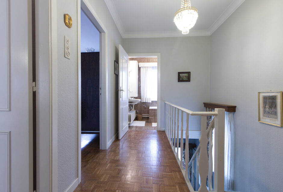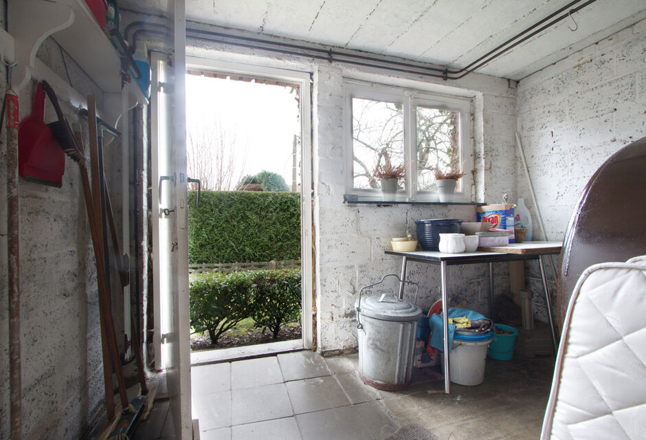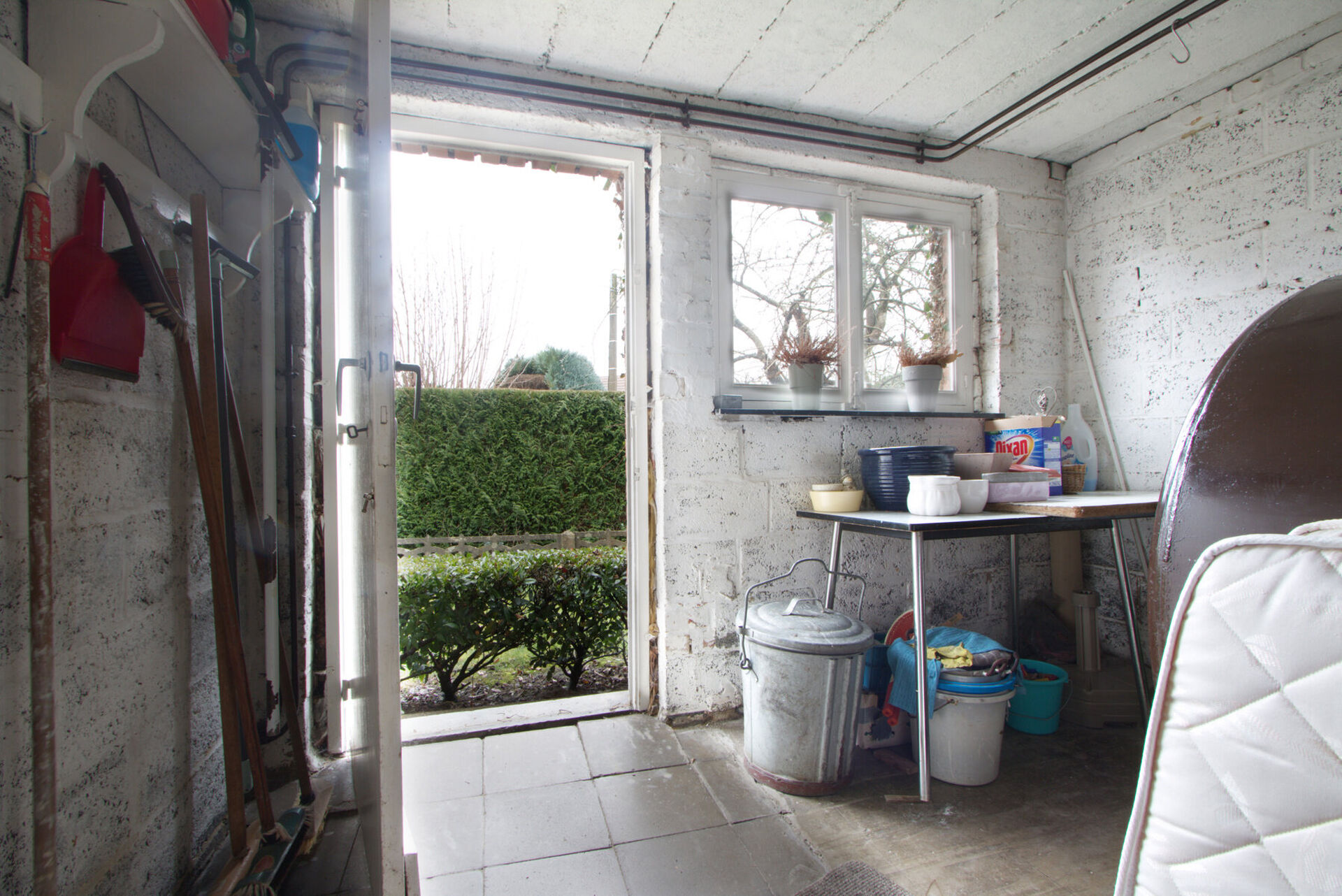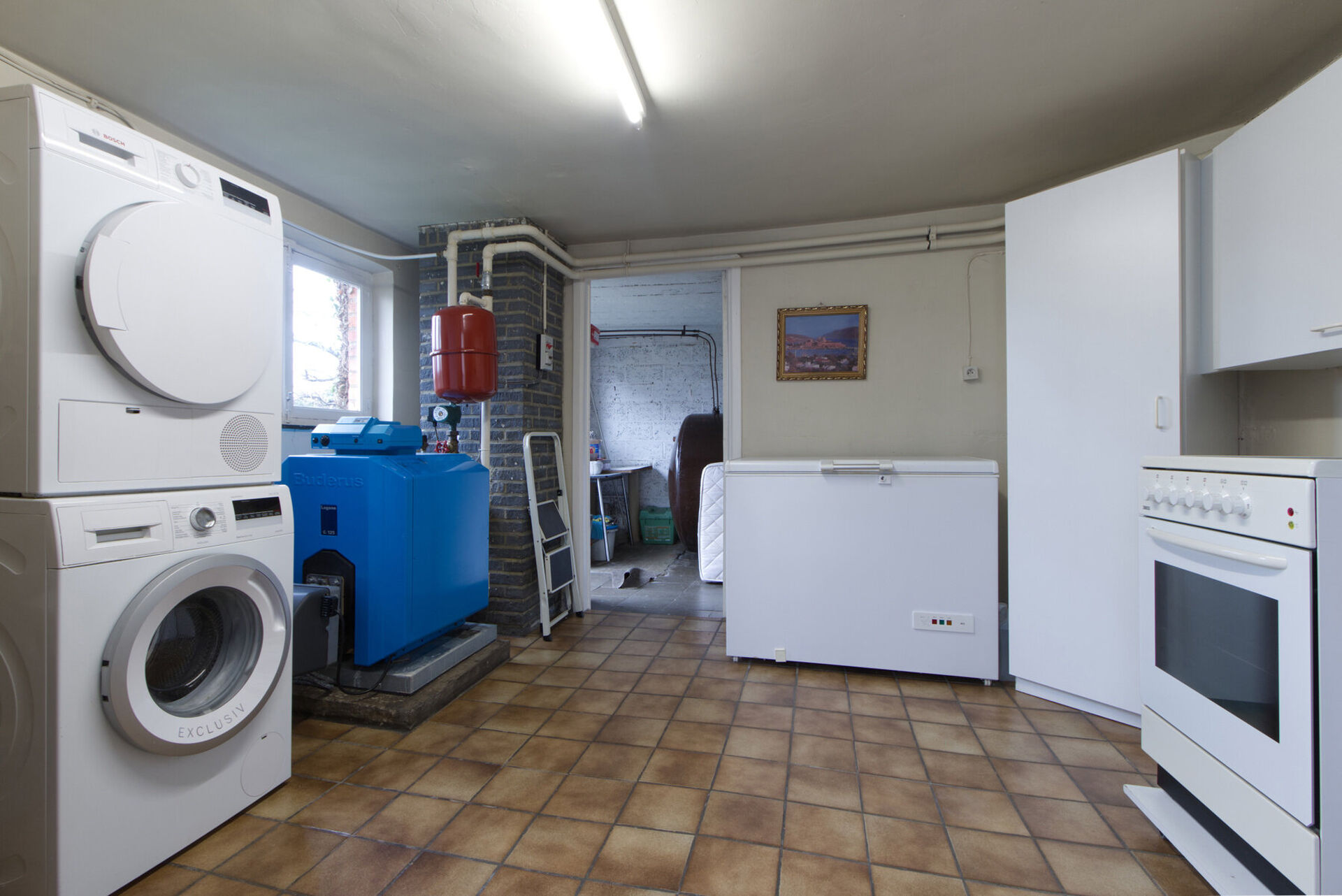 Aansluitend bevindt zich een ruime wasplaats/technische ruimte en een groot bijgebouw dat momenteel dienstdoet als berging. Dankzij de vaste trap naar boven kan deze verdieping ingericht worden als hobbyruimte, bureau of extra kamer.