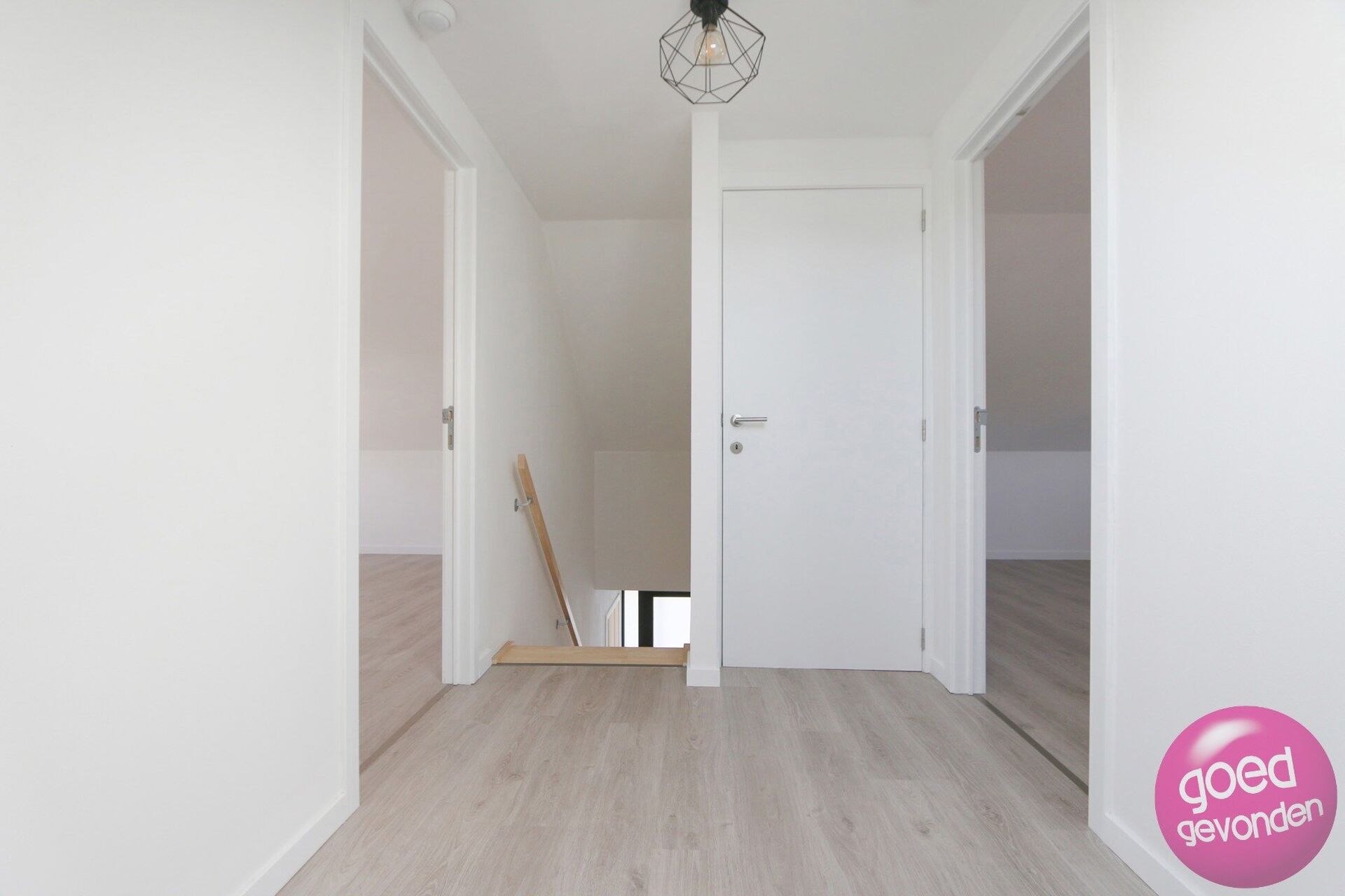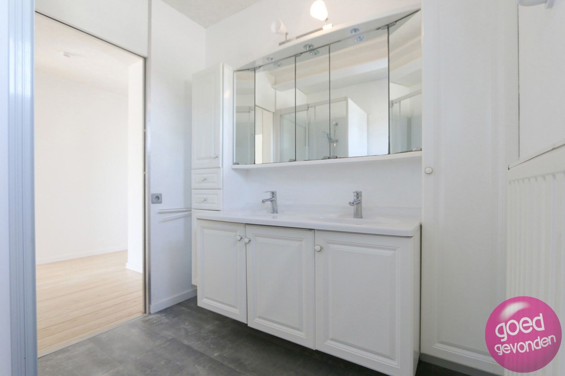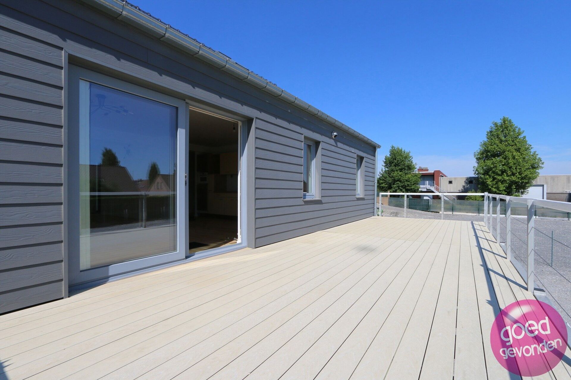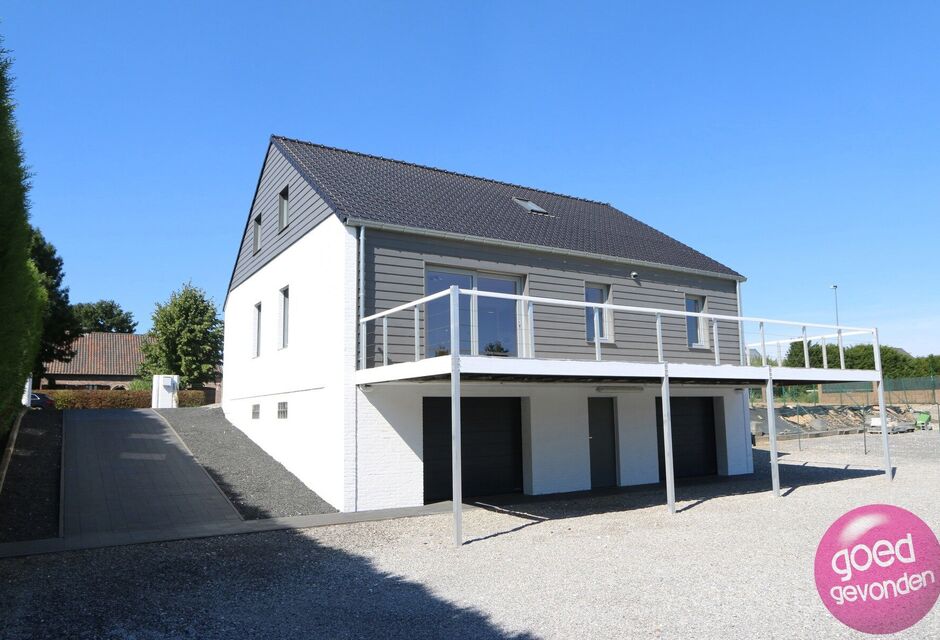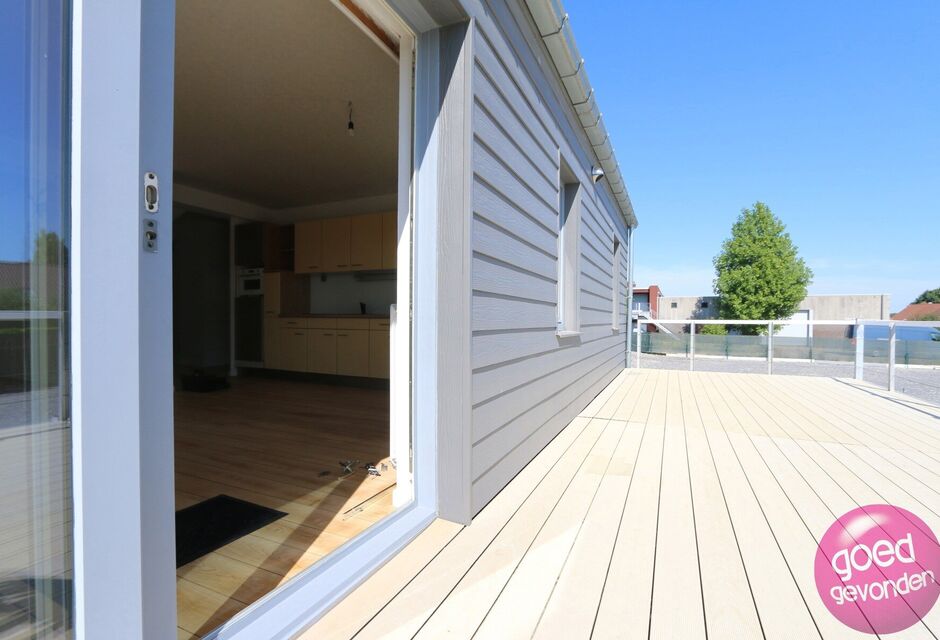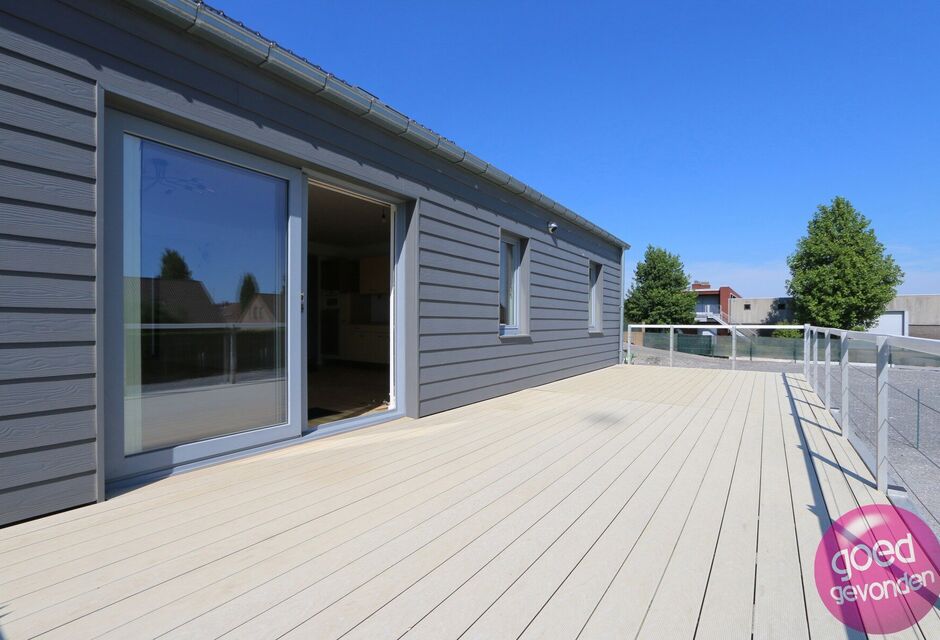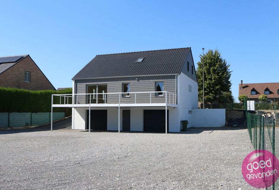+ Gelijkvloers: inkomhal, lichtrijke living met open keuken (±43 m²), groot terras, nachthal, 2 slaapkamers, badkamer.