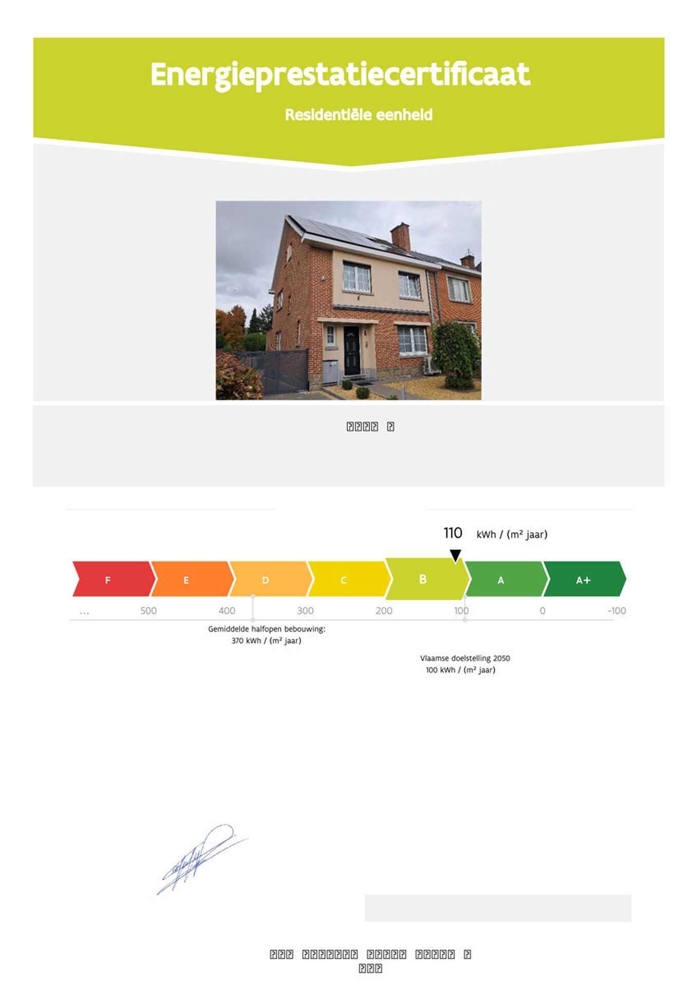 Dankzij de energetische verbeteringen voldoet deze woning bijna aan de energiedoelstellingen (EPC bijna A-label) van 2050. De combinatie van dubbele beglazing, dak- en spouwmuurisolatie, een recente gasketel en 14 zonnepanelen met batterij zorgt voor een laag verbruik.