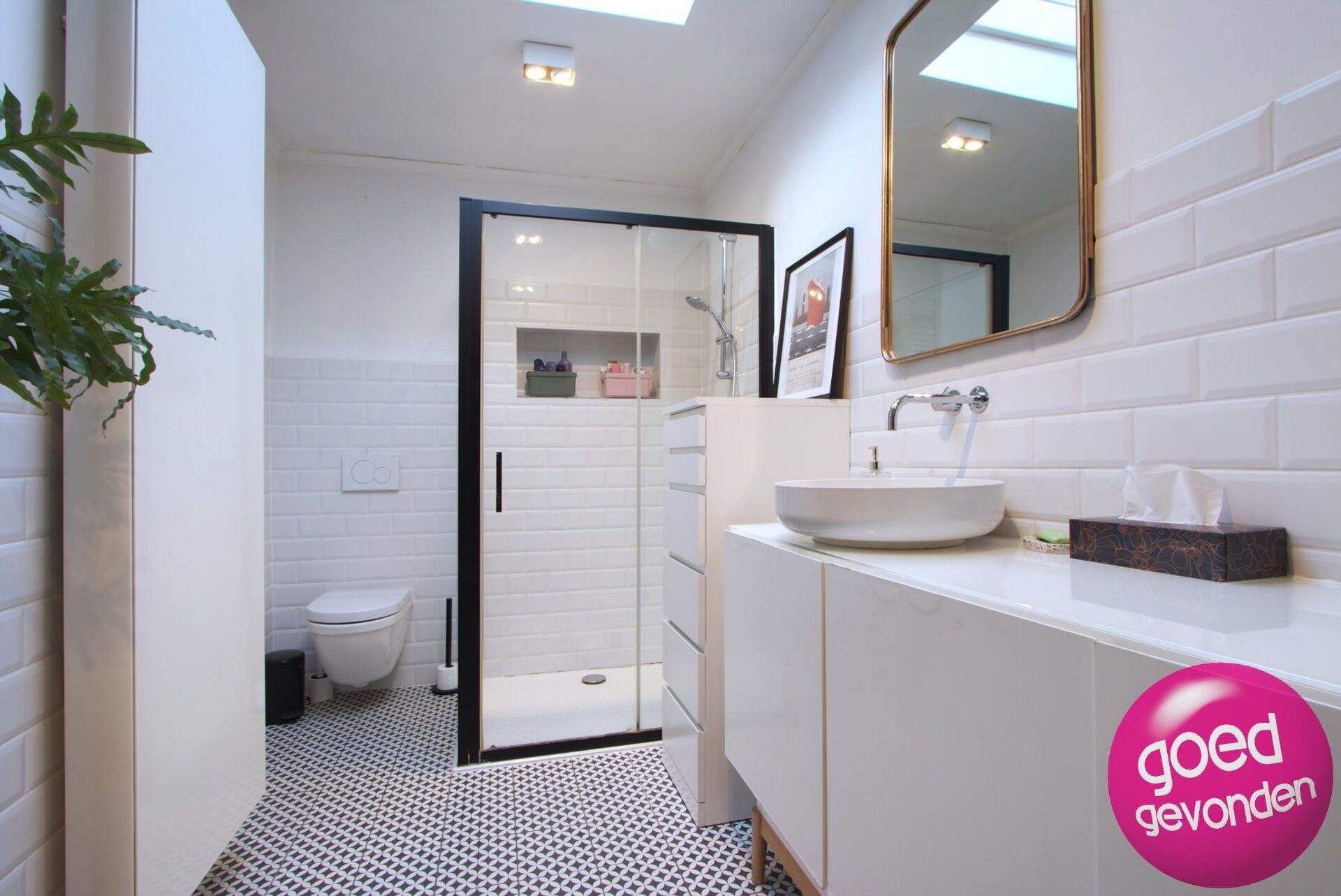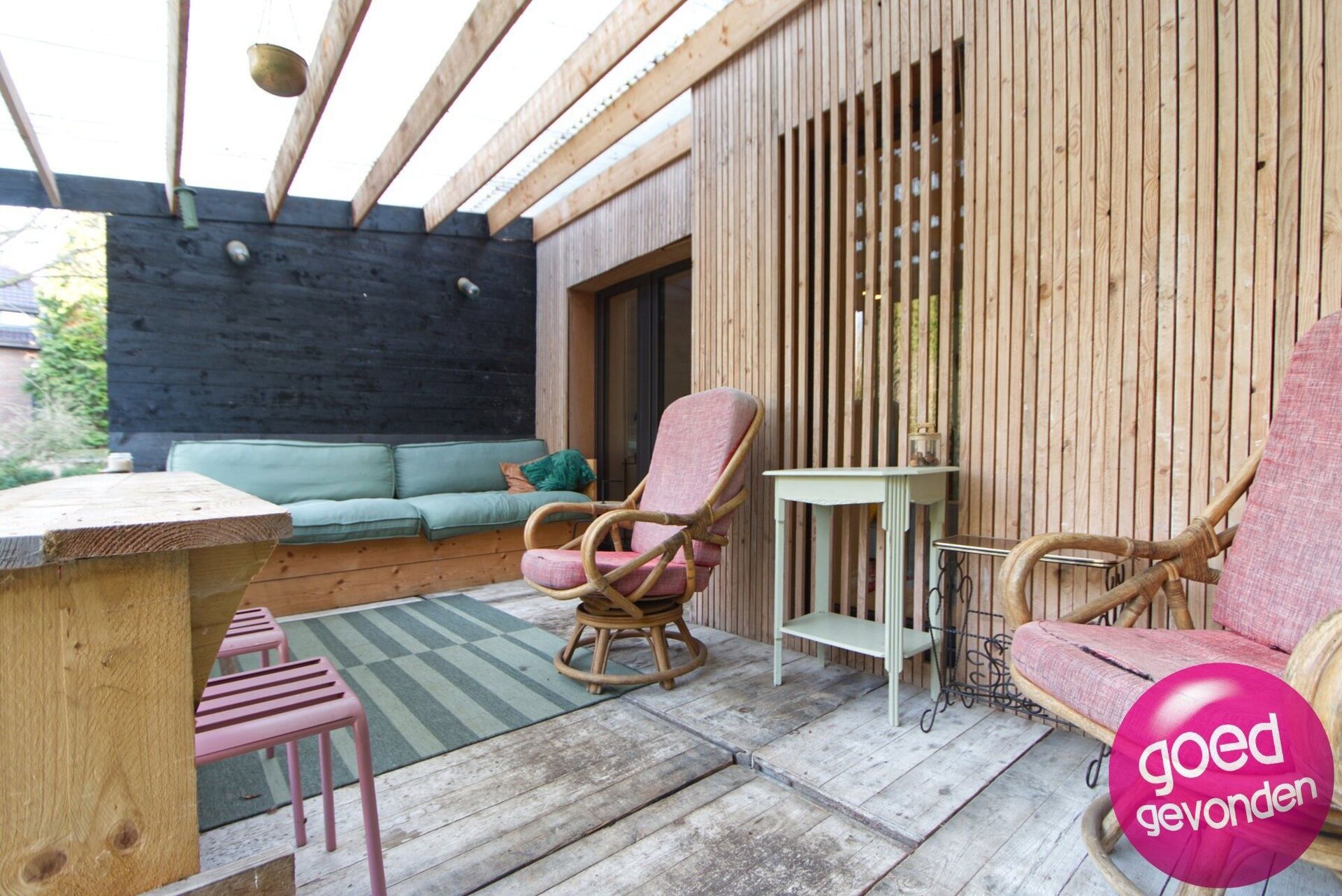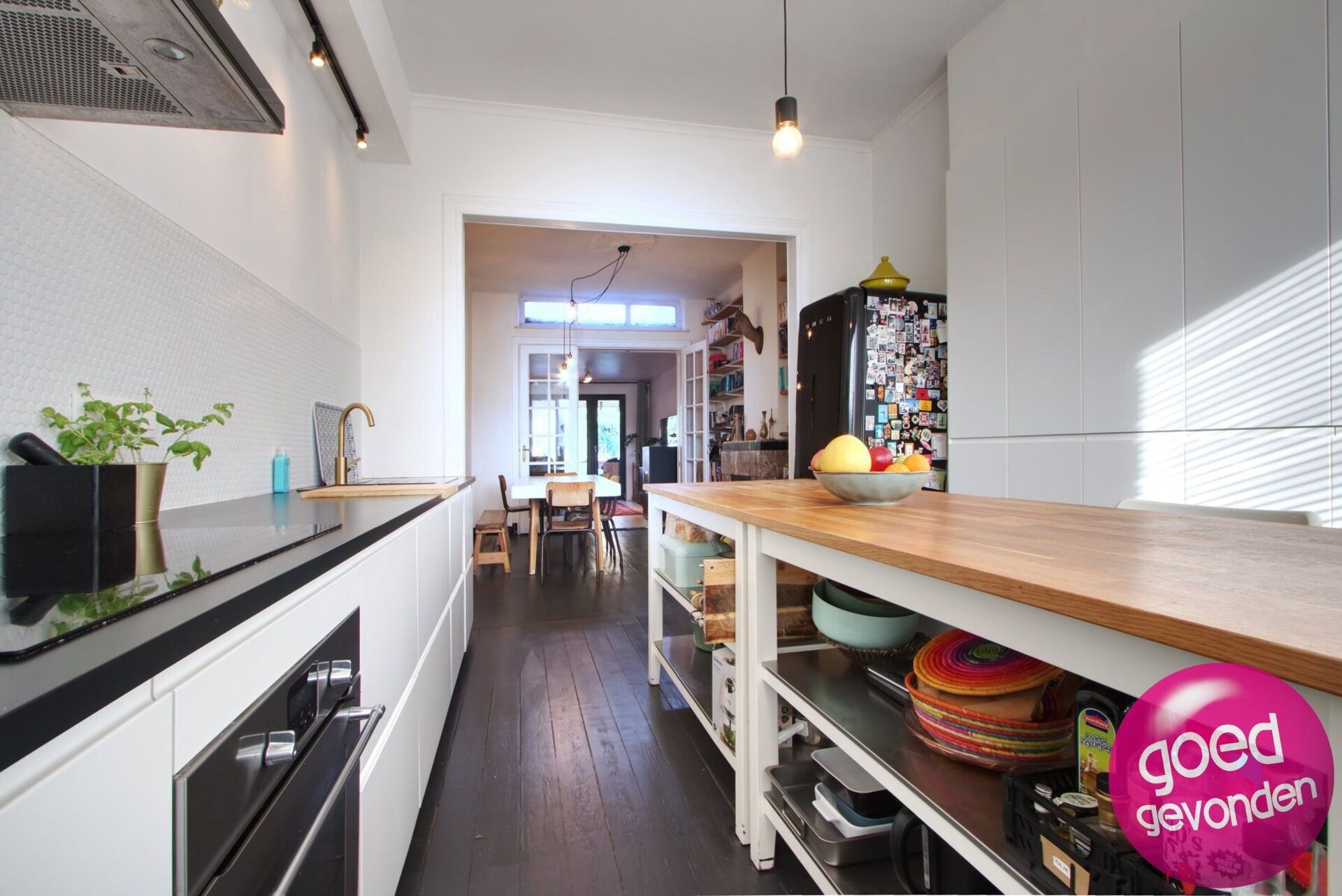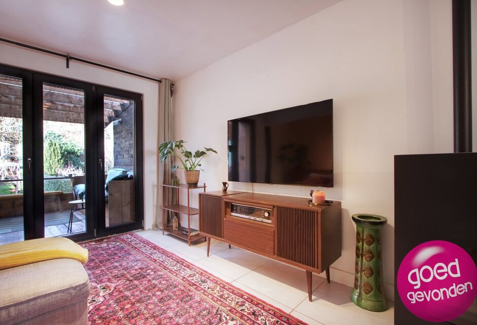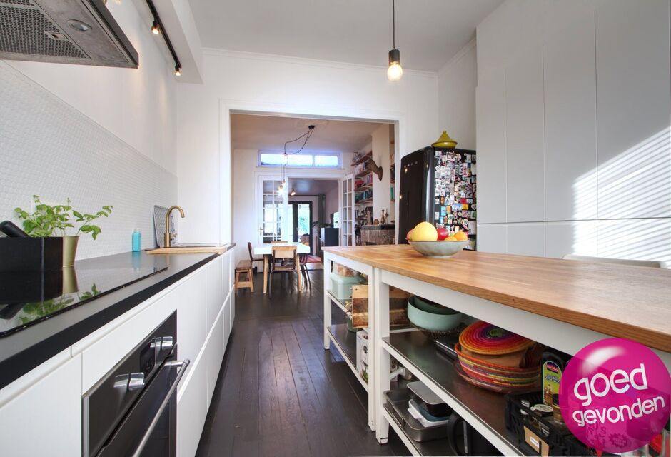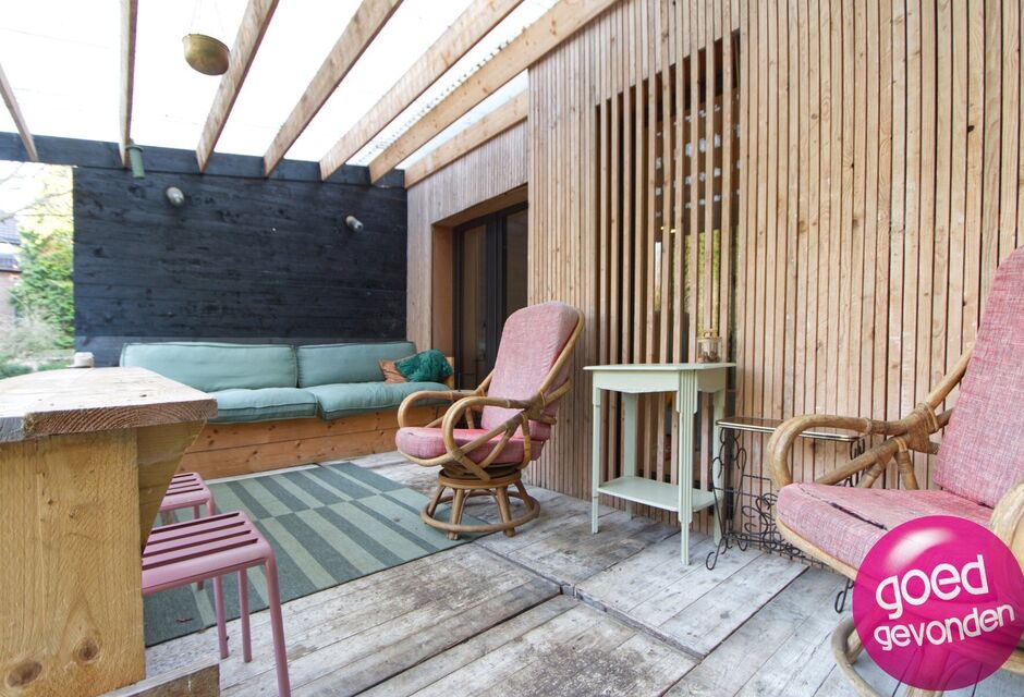 Binnenin geniet u van erg veel leefruimte, slim verdeeld in gezellige, warme leefzones. Eetkeuken, eetplaats en zitplaats vloeien mooi in elkaar over en monden uit in een ruim overdekt terras, dat naadloos aansluit op de zonnige stadstuin.