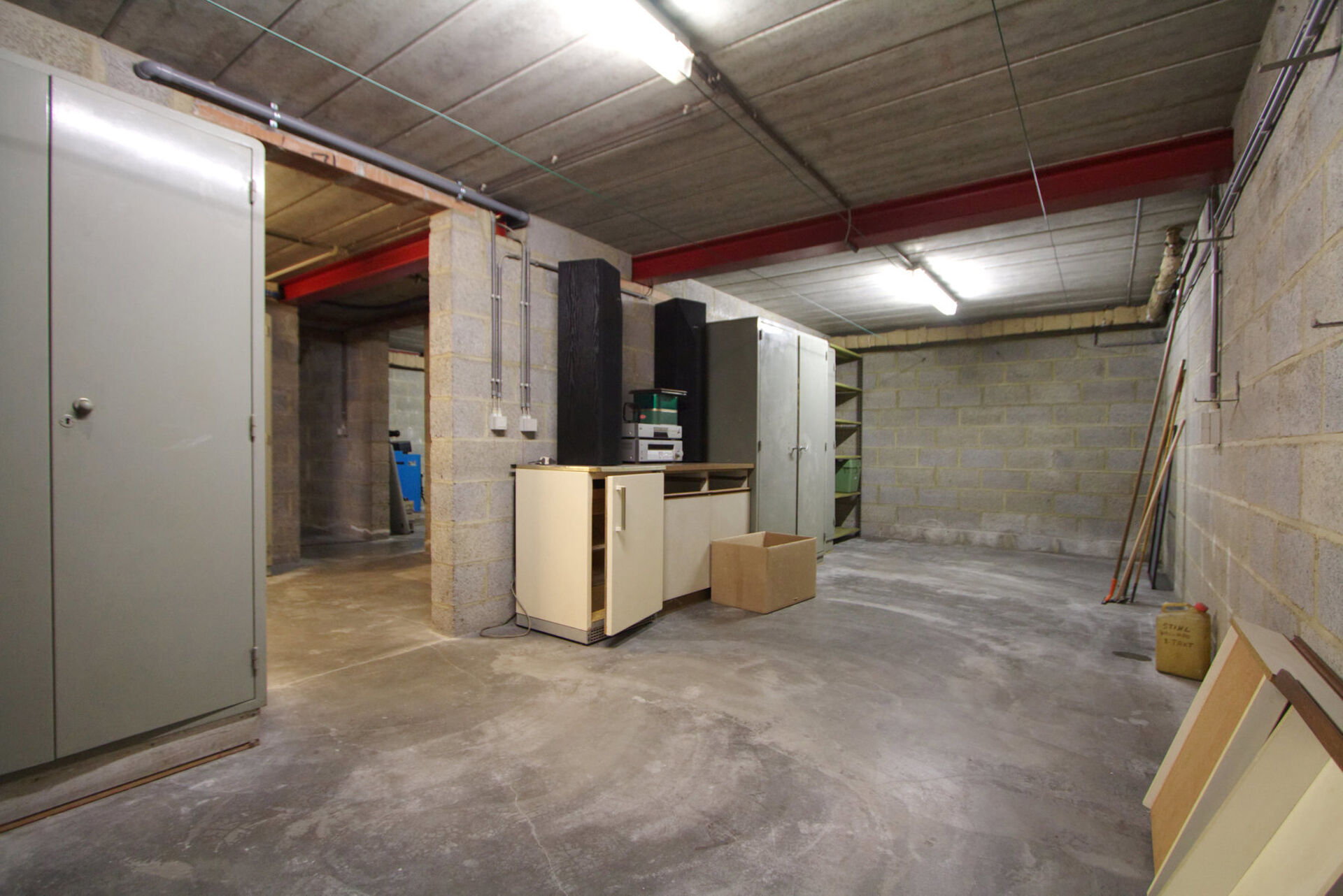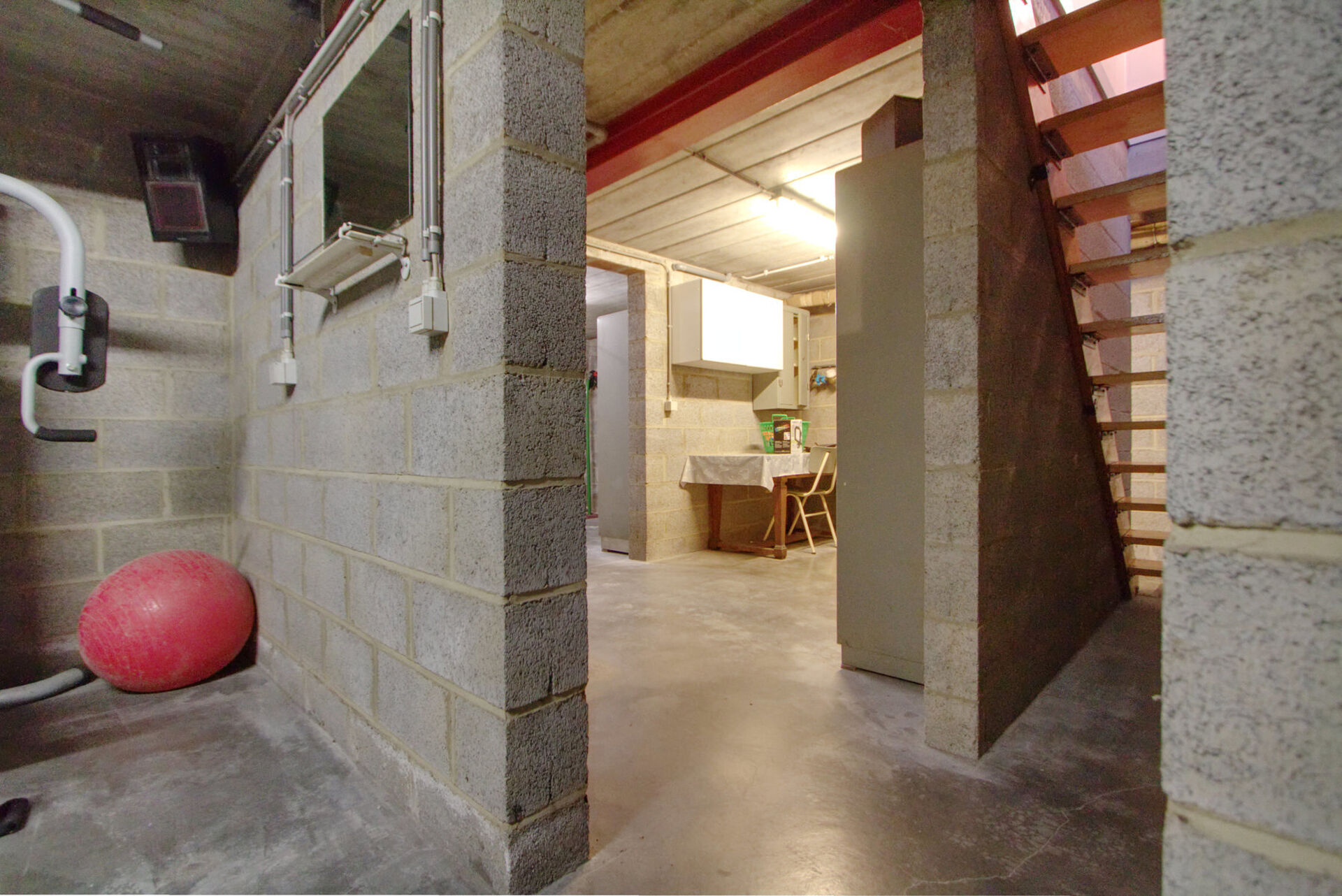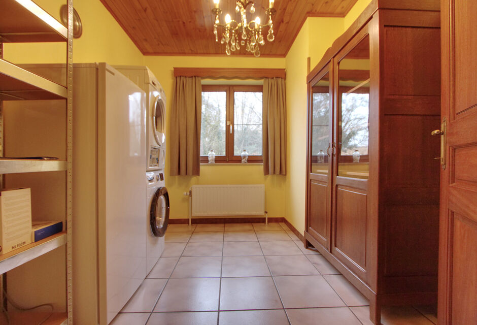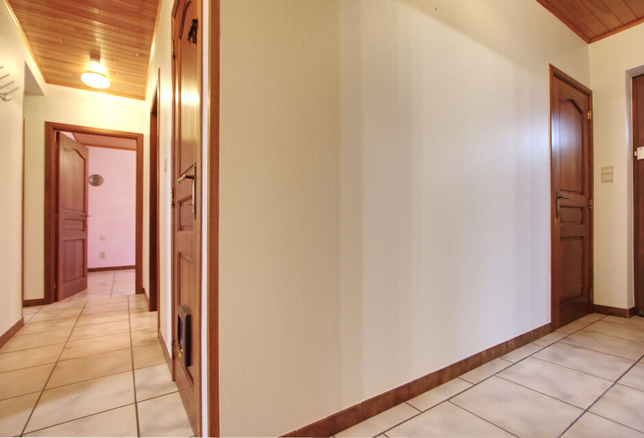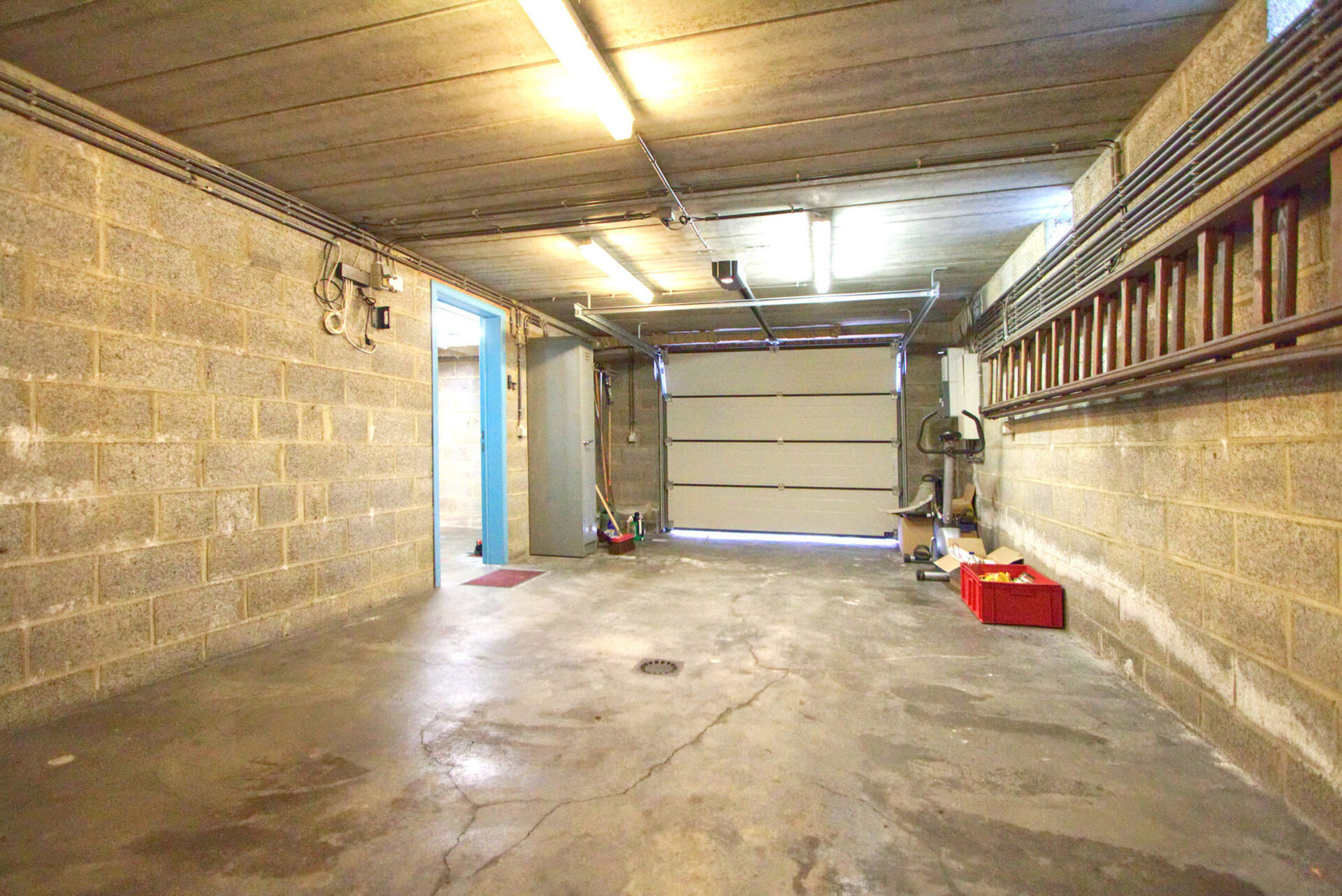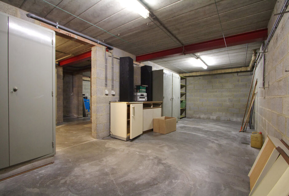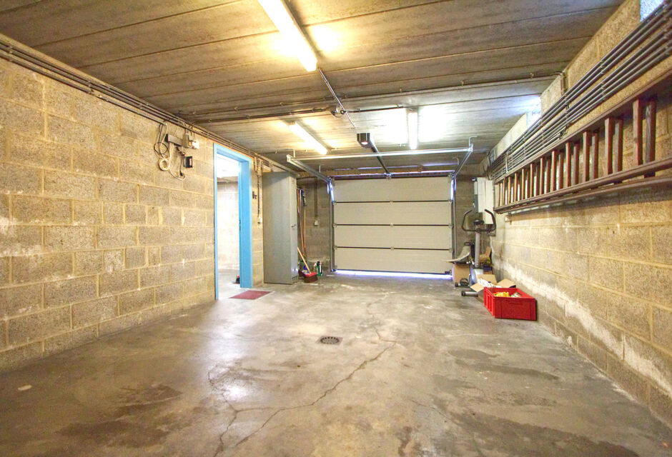 De woning is volledig onderkelderd. De kelder is bereikbaar via een interne trap én via de oprit met automatische sectionale garagepoort. In de kelder bevinden zich een ruime garage en drie grote kelderruimtes, ideaal voor stockage, hobby of werkruimte.
