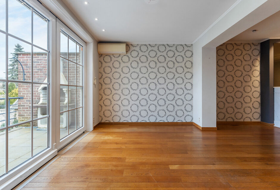 + installeer een keuken op het gelijkvloers en je hebt een dubbele woonst met 5 slaapkamers, 3 badkamers, 2 livings, 2 keukens, 2 terrassen.