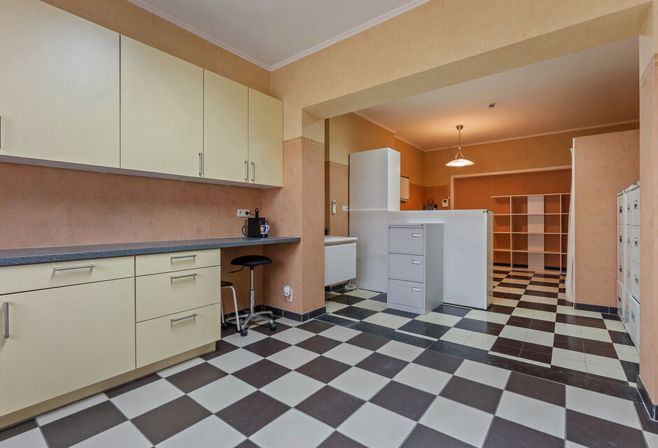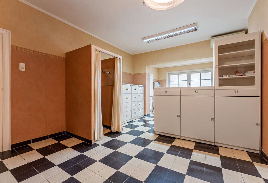 HET GELIJKVLOERS is ook voorzien van een slaapkamer en een badkamer maar is bovendien vooral ingericht als praktijkruimte met wachtzaal en gastentoilet, niettemin biedt het gelijkvloers unieke mogelijkheden: