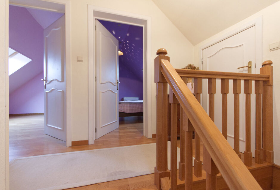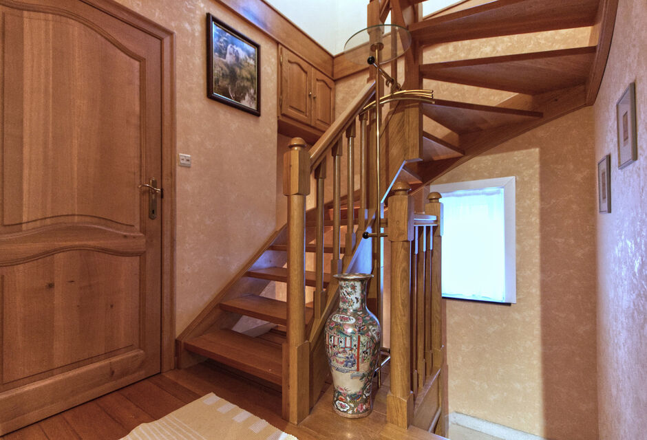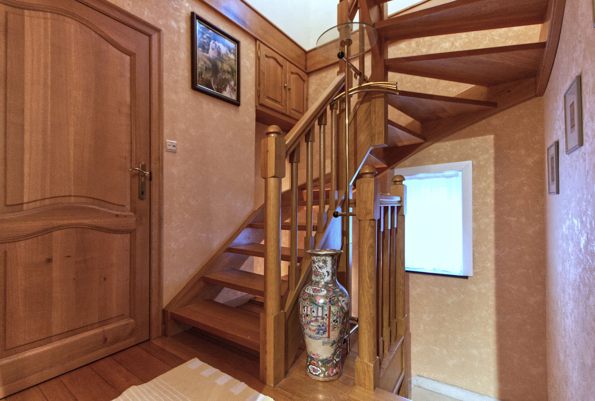 + Via de vaste houten trap bereikt u de tweede verdieping inhoudende een nachthal met twee slaapkamers, een badkamer met toilet en een zolderberging.