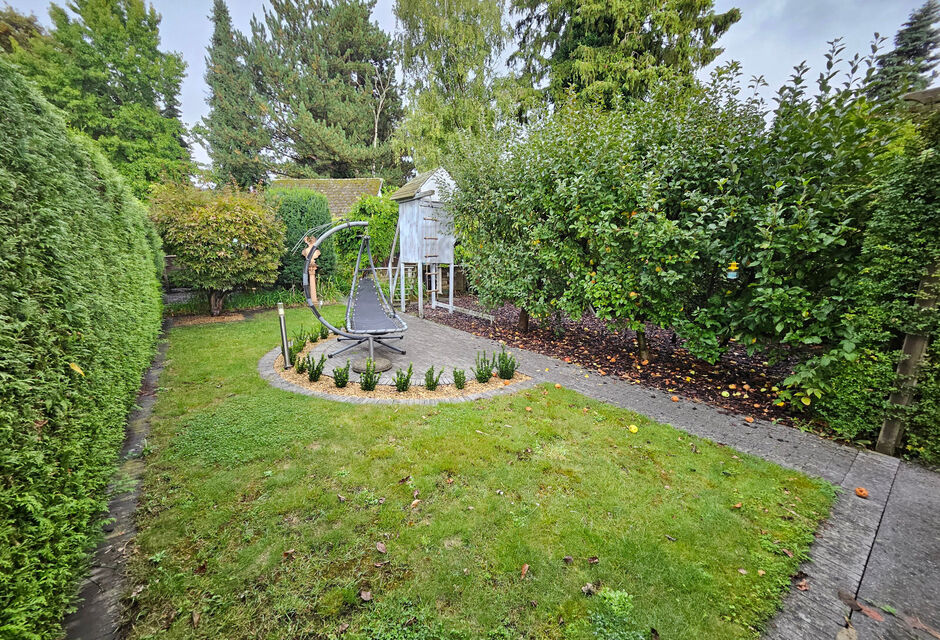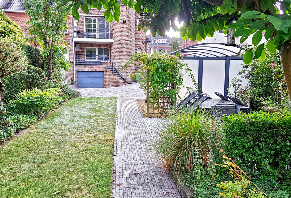 Mooi aangelegde tuin, volledig omringd door andere tuinen, wat zorgt voor een ongekende rust. U heeft direct zicht op deze groene oase vanaf de terrassen op zowel de beneden- als de eerste verdieping.