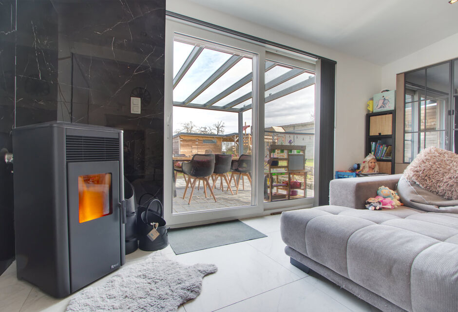 + Zeer efficiënte en gezellige pelletkachel in de leefruimte
