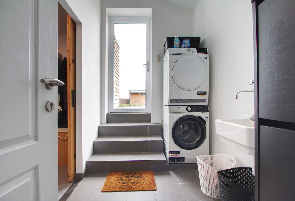 + Een ruime wasplaats met directe toegang tot het terras (ideaal om de was buiten te drogen)