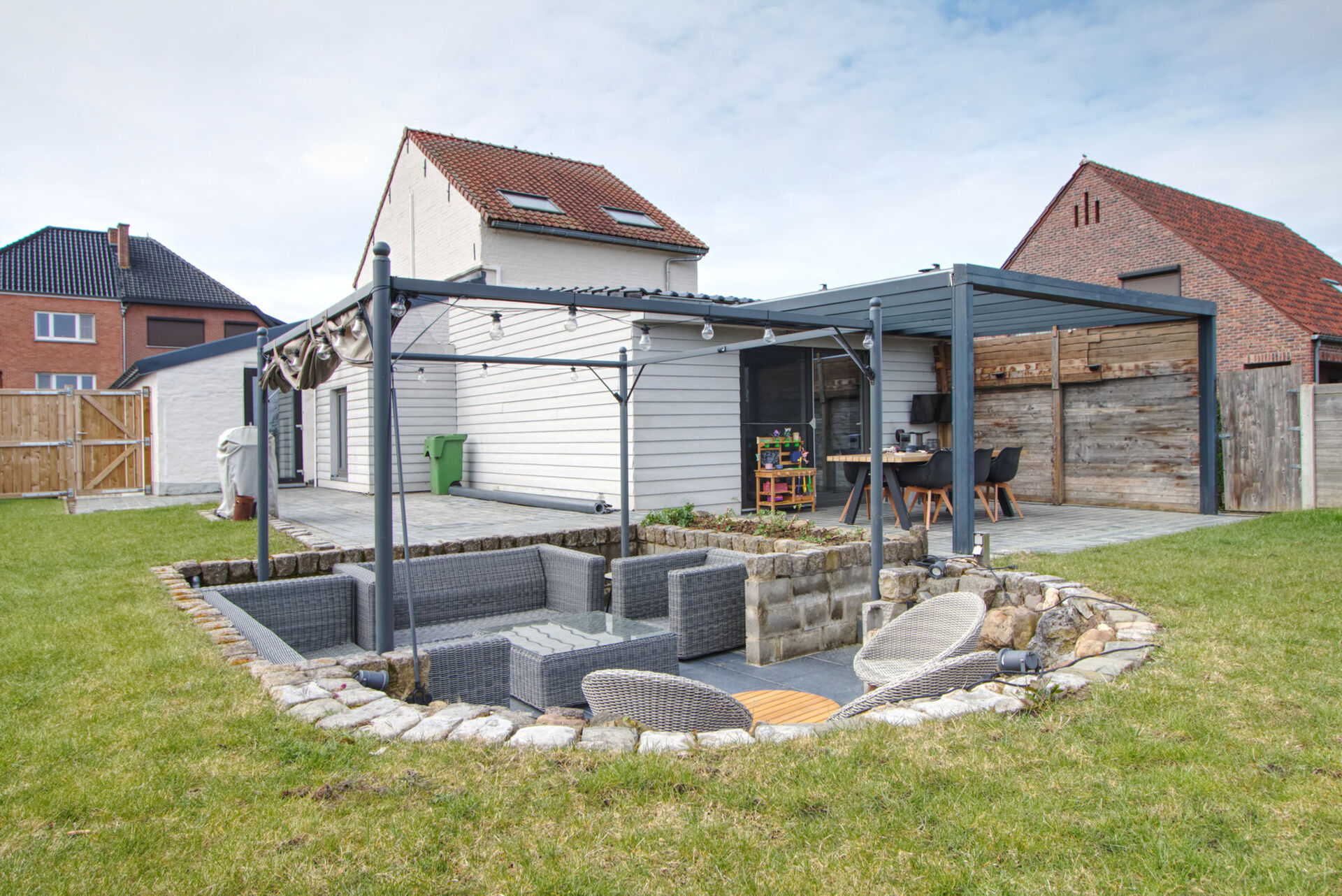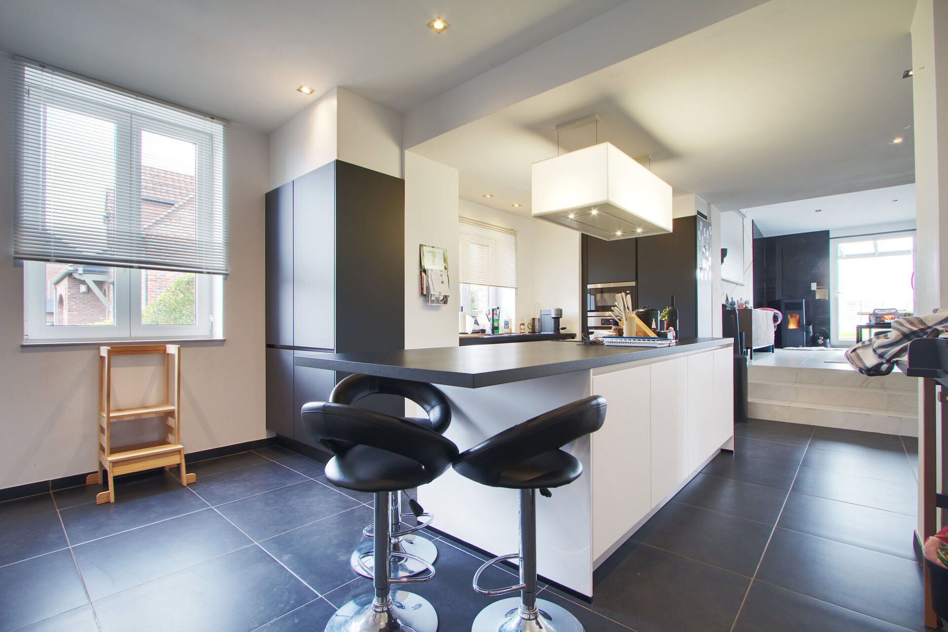 De woning werd in 2020 grondig aangepakt en straalt vandaag modern wooncomfort uit, met een bijzonder aangename en doordachte indeling. Op het gelijkvloers vloeien keuken, eetplaats en living naadloos in elkaar over, wat zorgt voor een open en lichtrijke leefruimte. Vanuit de gezellige zitplaats heeft u directe toegang tot het uitzonderlijk ruime en zonnige terras met sfeervolle zitkuil en aansluitende tuin.