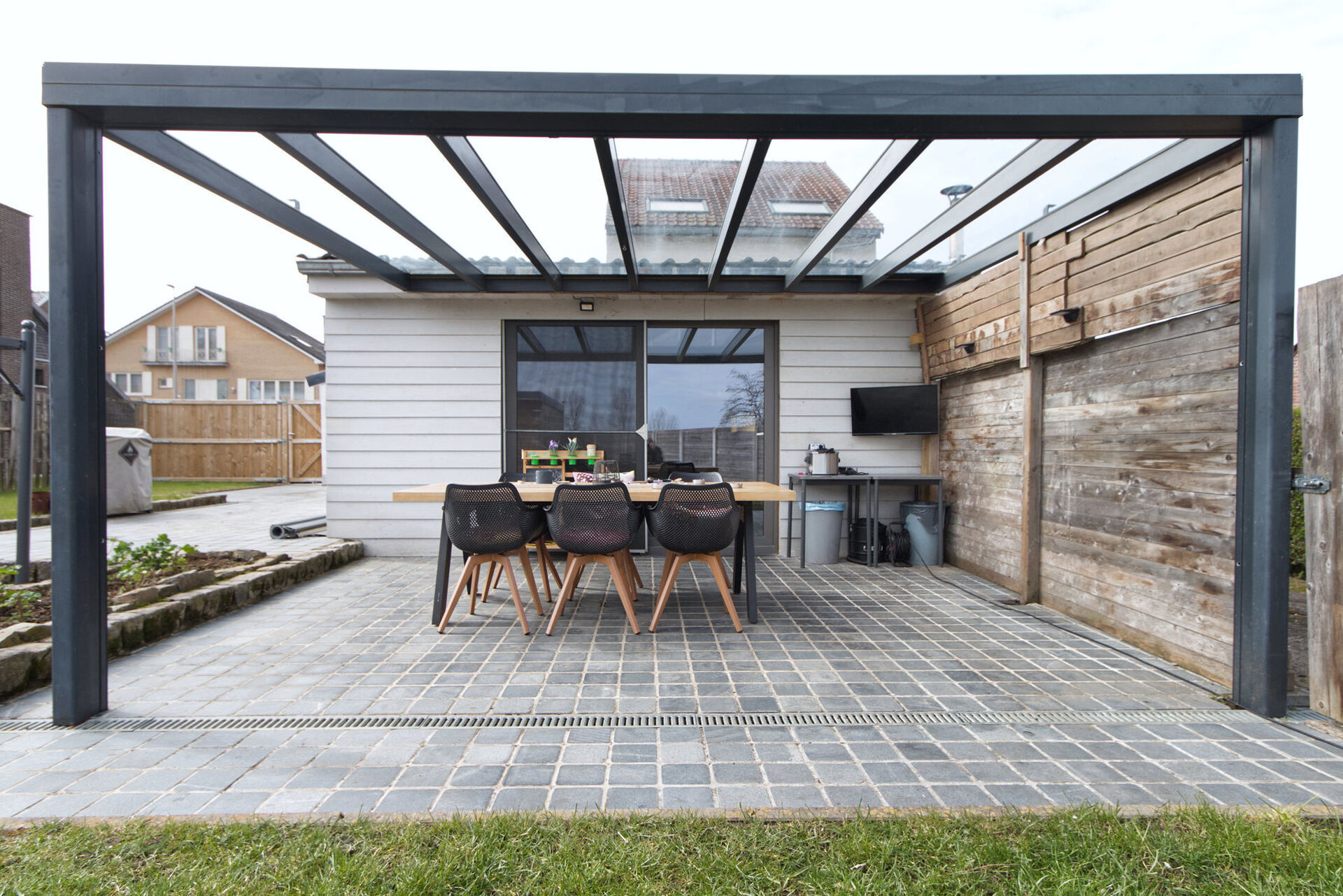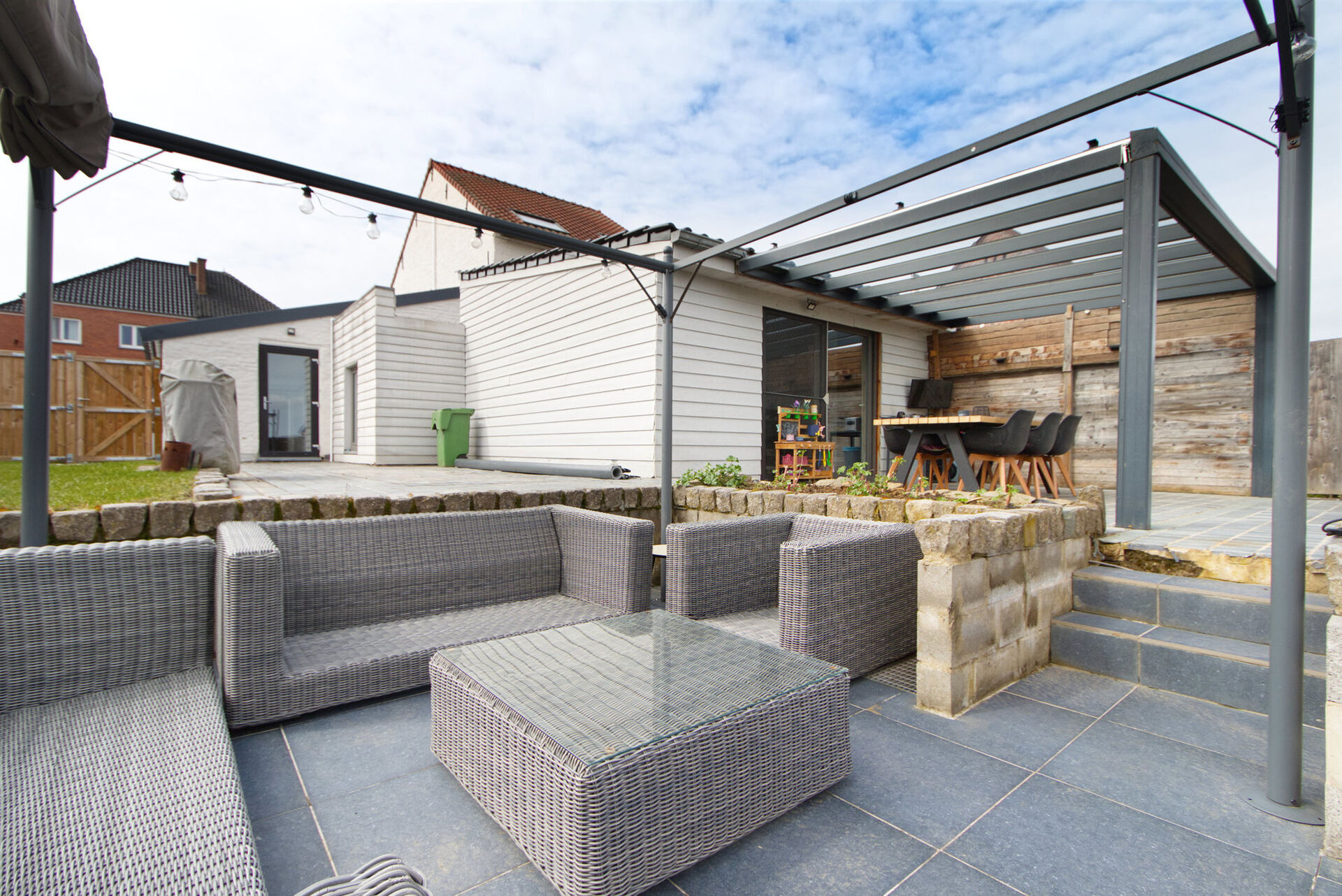 + een recent geplaatste carport met tuinberging achteraan het perceel.